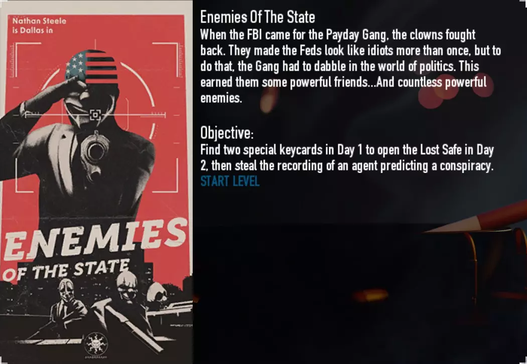 要播放音频文件,你需要返回《收获日2》的犯罪网络中“失落录音带”菜单,然后点击想要查看的劫案(本示例为“暗影突袭”的失落录音带)。此时你不会进入劫案重玩界面,而是会看到播放录音的选项,点击即可开始播放音频文件! 坐下来放松一下,享受这些精彩的背景故事吧,它们会为一些悬而未决的情节画上句号,也可能为《收获日3》埋下伏笔! 录音带1(Bad For Business):暗影突袭