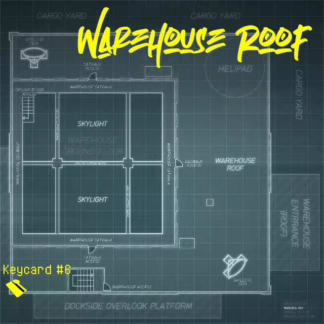 在北部仓库屋顶的通风管道上。要到达这里,你需要在任务规划阶段购买北部仓库屋顶通道资产(确保选择最北侧的通道梯子)! 门禁卡 #2: