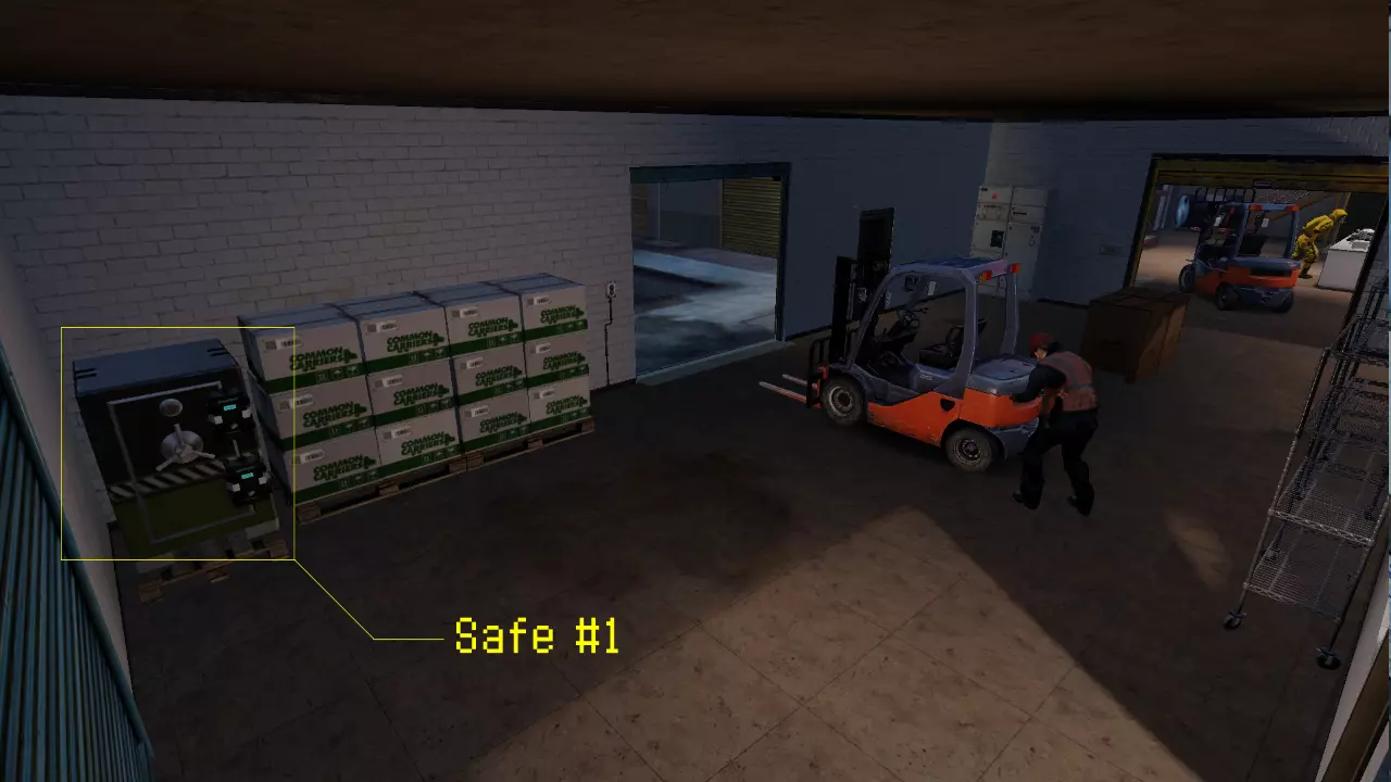 第一个安全生成点可在北部仓库东北出口旁找到。那里有一辆叉车,旁边有一名工人在工作。 安全点 #2: