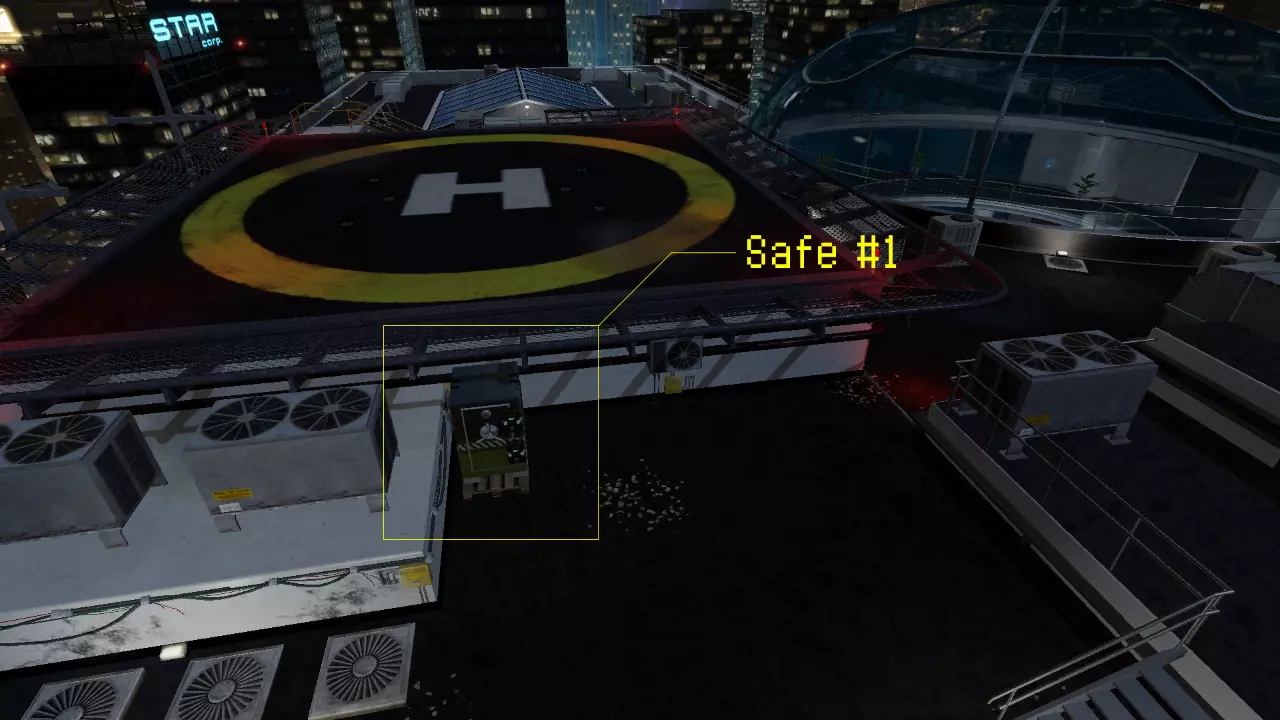 第一个保险箱生成点位于屋顶的着陆平台旁。着陆平台有一些楼梯通向那里——只需绕到平台没有楼梯的对面,保险箱就在那里。 保险箱 #2: