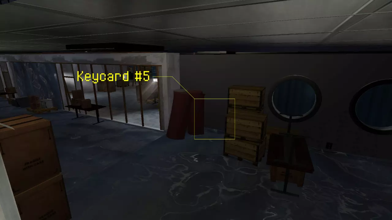 主仓库内,仓库中央的一大堆木箱顶部。 ㅤ 5号钥匙卡: