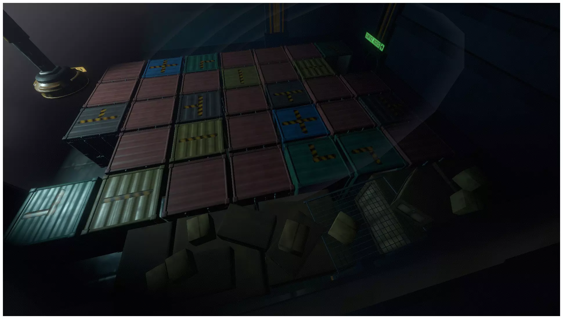 在工程区域游荡时,你会遇到一个有起重机和集装箱的房间,那里有一个秘密房间,只有通过用集装箱铺就正确的路径才能进入。