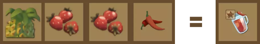 菠萝 [x1],草莓 [x2],辣椒 [x1]。食谱“甜菜根 shots”:可额外增加生命值。