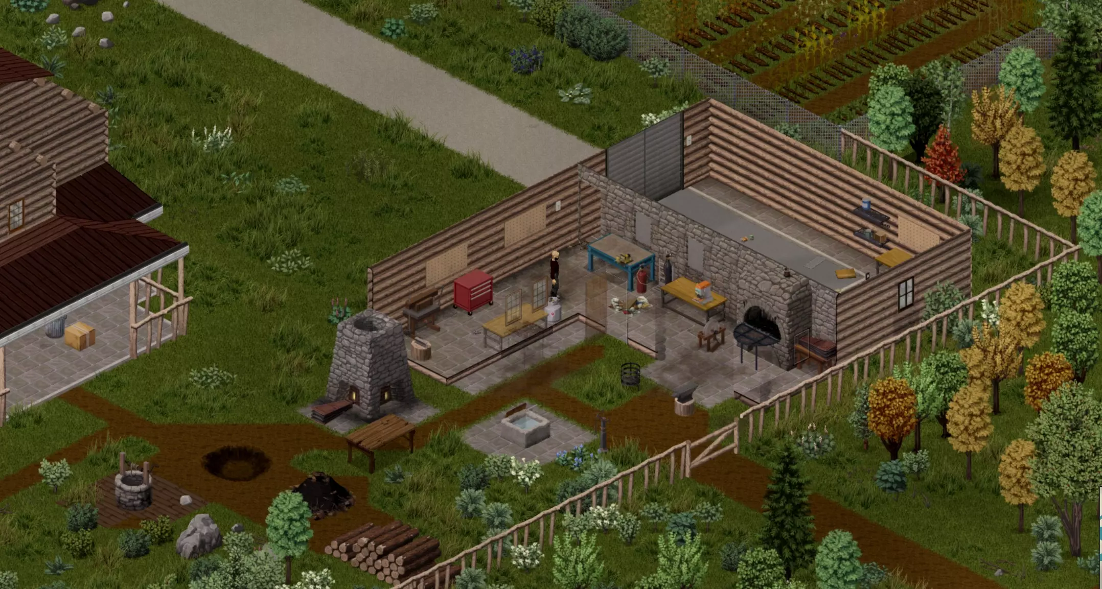 优点: - 超大且非常漂亮的房子 - 广阔的区域 缺点: - 距离城镇较远,但可以步行到达 - 加油站很远 - 需要预先清理区域,有大量的僵尸群 - 未配备农业设施 - 无法制作复杂配方 - 该区域没有有用的战利品 - 不适合作为第一个基地 - 需要在区域内做很多事 - 需要建造围栏,且在资源方面成本很高 - 没有地下室总结:我没有添加兴趣点,因为这个房子只适合你想从当前基地搬出去,且基地已有大量物资的情况。只适合大型团队游玩。不能说离城市或农场很远。这里的主要问题是,初期布置时会非常费力。 基地7号 我觉得这太强了!房子很大。僵尸的数量在这片区域不算特别多。这里有地下室,还有一个独立的仓库。此外,还有菜园、田野以及一些动物。