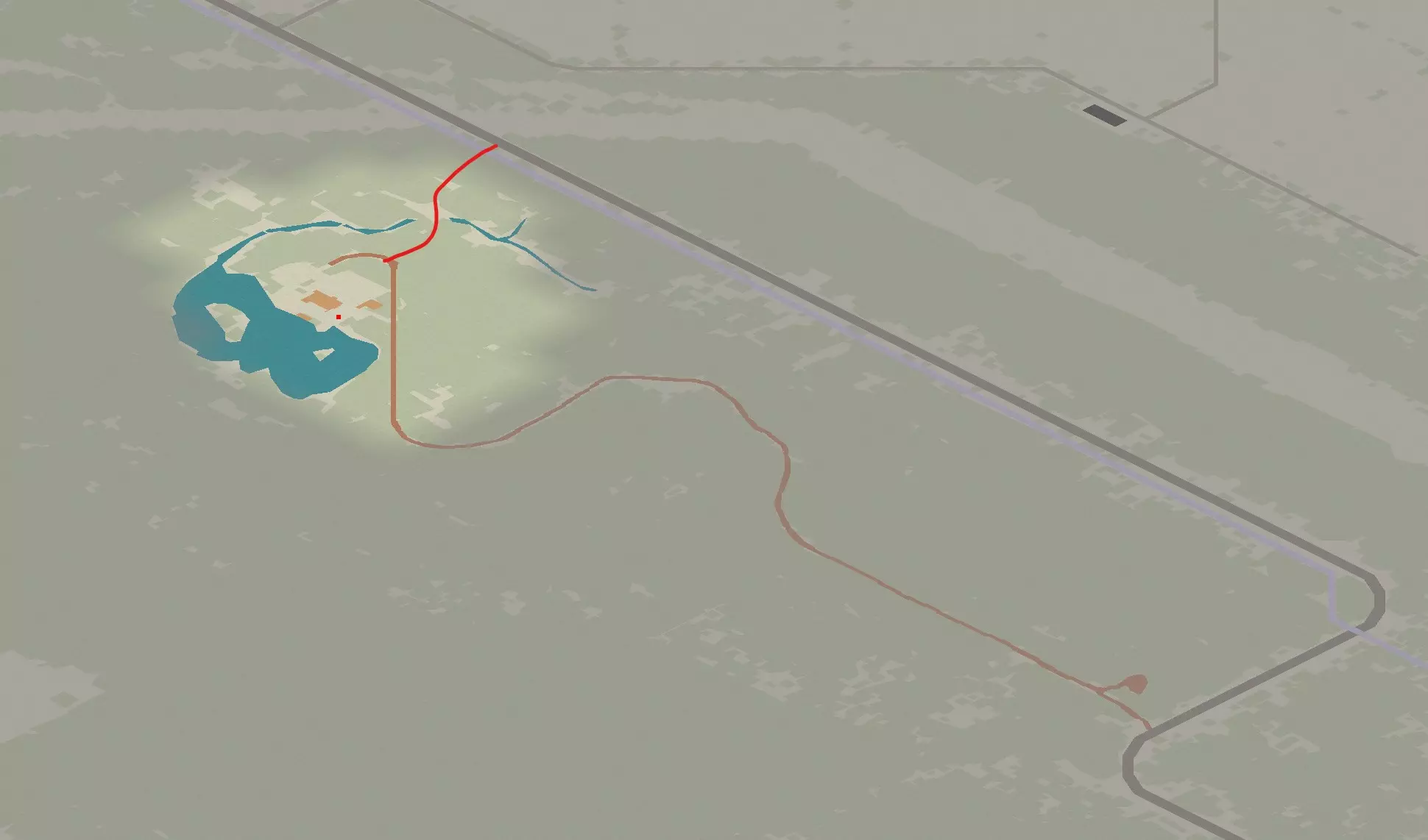 优点 + - 附近有湖泊 - 超大区域 - 部落迁徙可能性低 - 附近有购物中心 - 距离加油站不算太远 缺点 - - 远离城市,需要车辆 - 需要预先清理区域 - 未发现发电机刷新 - 未配备农业设施 - 未配备复杂配方制作设施 - 未配备畜牧业设施 - 建议设置围栏 - 没有地下室 最近的兴趣点
