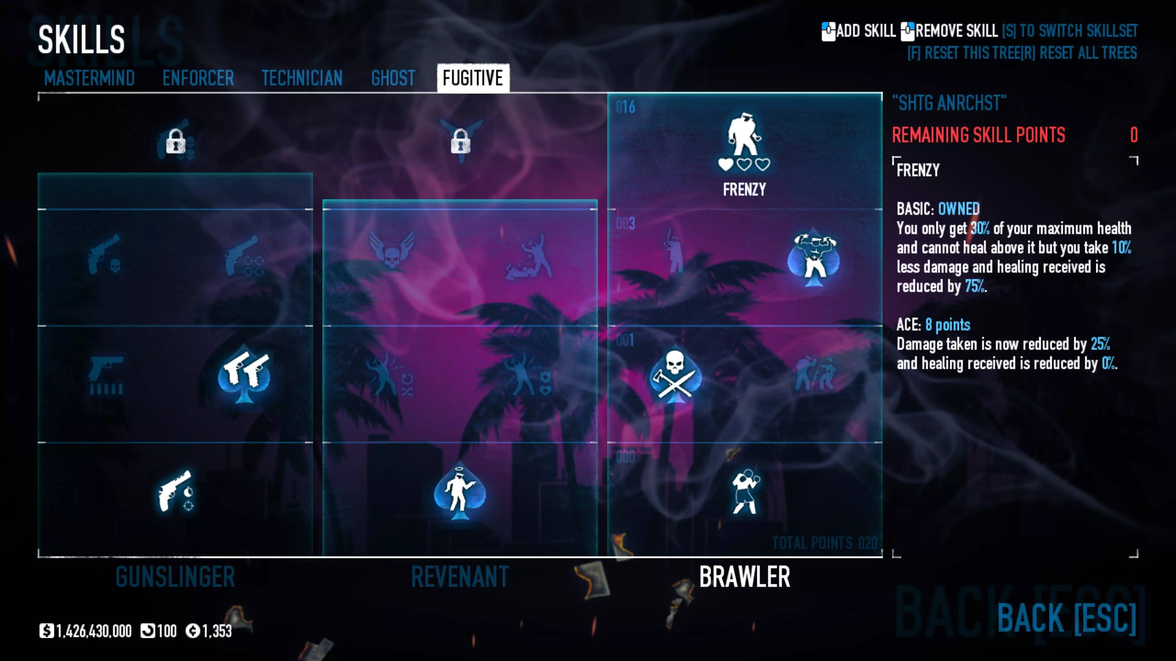 逃亡者 “双持武器”——无需多言。 “九条命”——适用于OD机制激活时的游戏情况。 “嗜血”——当处于紧急情况且正在换弹时,我们需要击杀某个敌人,此时增加1600%的近战伤害以及后续的换弹加成将大有帮助,多次救你于危难。 “狂战士”与“疯狂”搭配效果极佳,能立即为我们提供伤害加成。