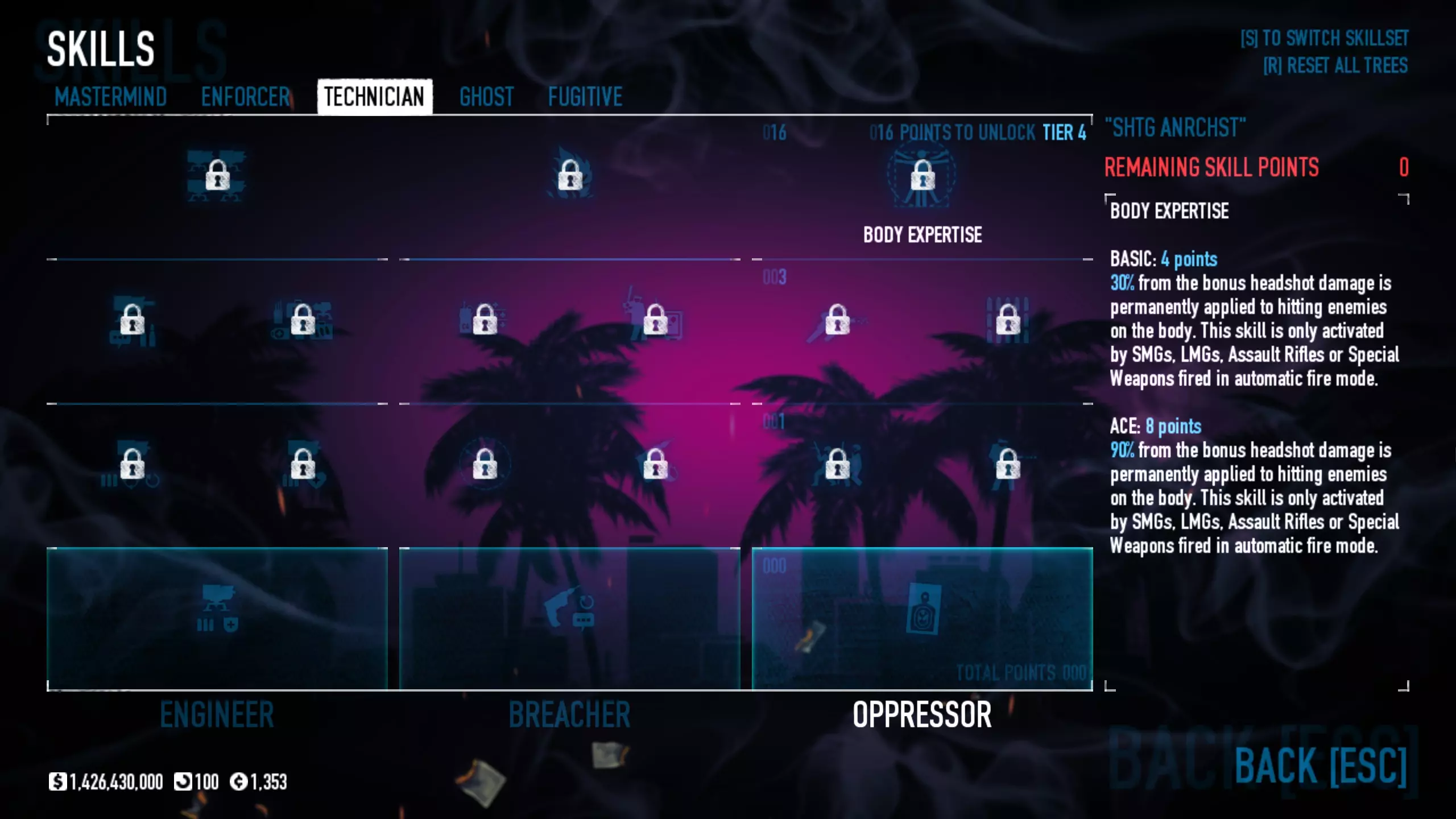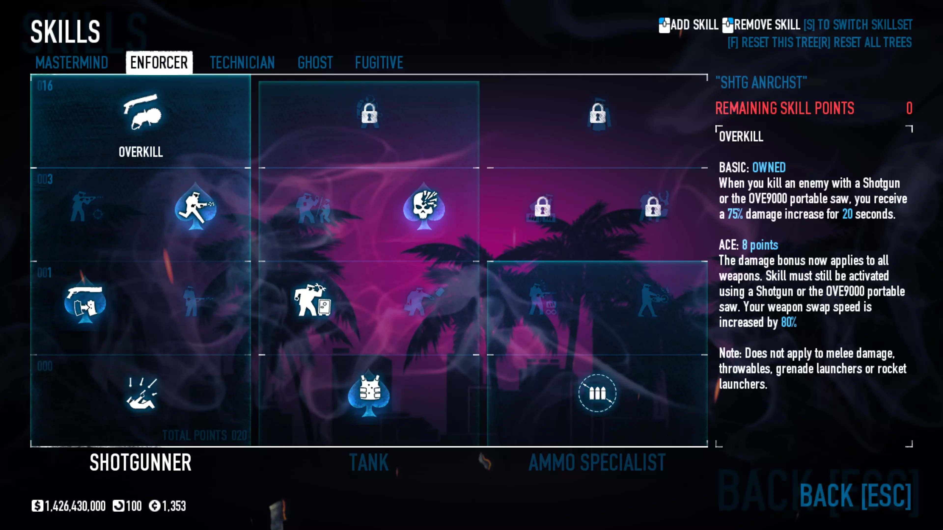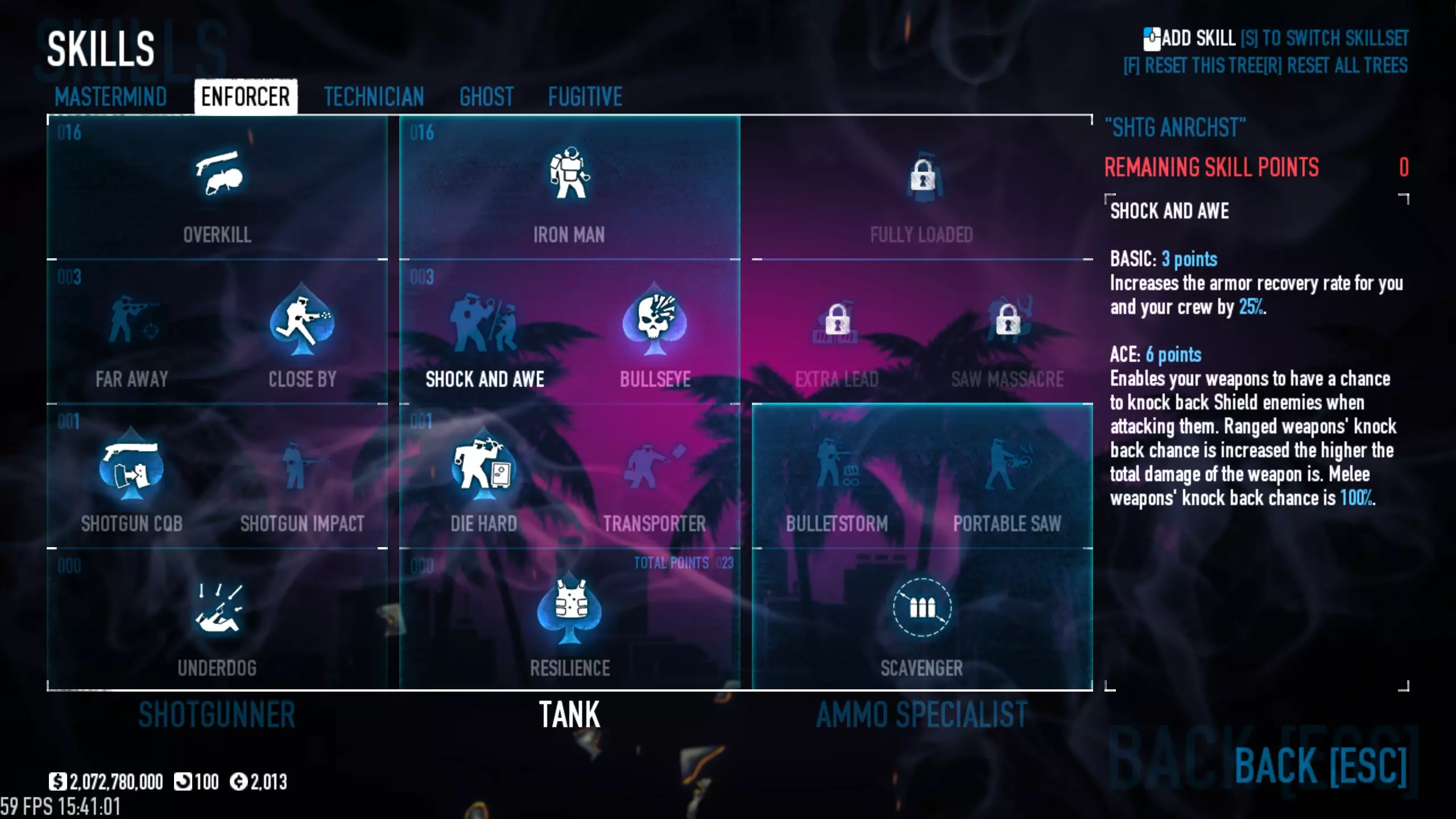 关于配装的几点说明 这套配装非常简单:它的设计目的不是为了支援队友,也不是为了躲在掩体后挖地或搞其他花里胡哨的操作,其主要任务是在短短几秒内消灭所有活物,从普通特种兵到精英单位(Dozer)都不例外。 那么,我们需要为此准备些什么呢?技能 恶名昭彰 要在这个Build中容纳以下所有技能,至少需要3级恶名值以及能够降低技能成本的后续强化。