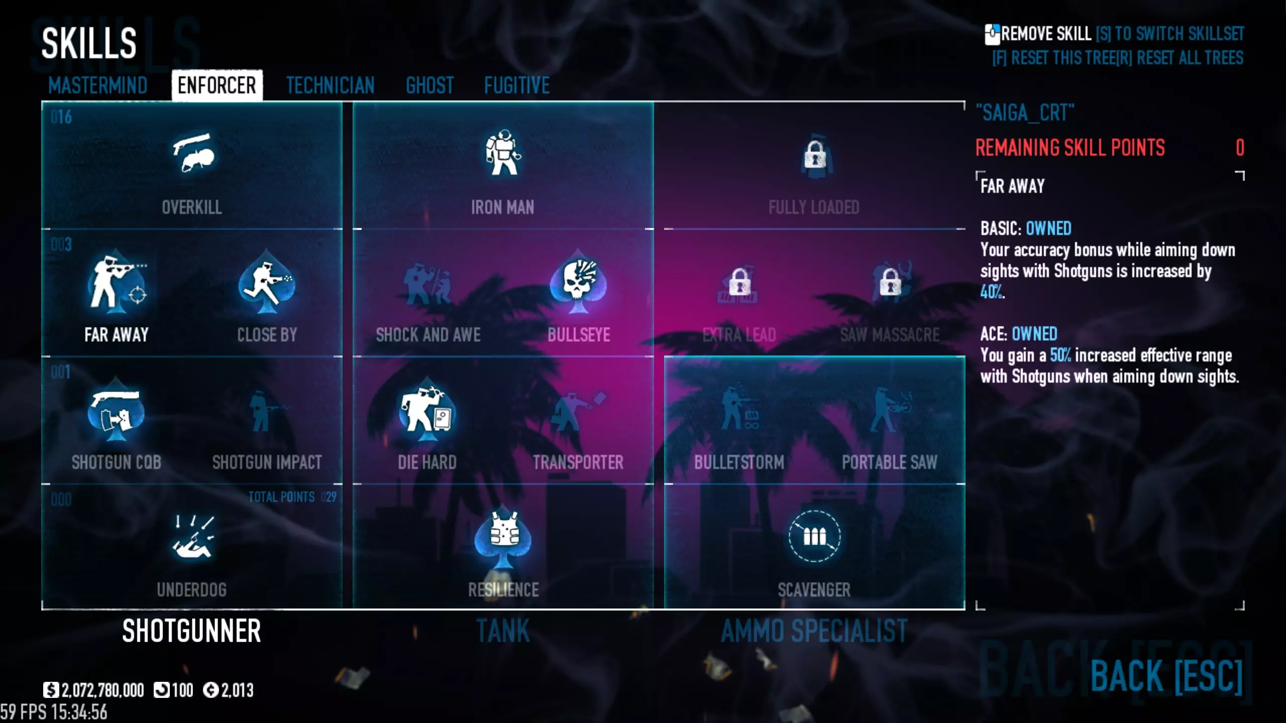 使用赛吉(Saiga)时可进行如下调整:移除“双持”(Akimbo)和“深口袋”(Глубокие карманы)技能,替换为“远程”(Издалека)技能的专业版,这能让你在中远距离更有效地对抗敌人和狙击手;此调整可与以下改动搭配使用。