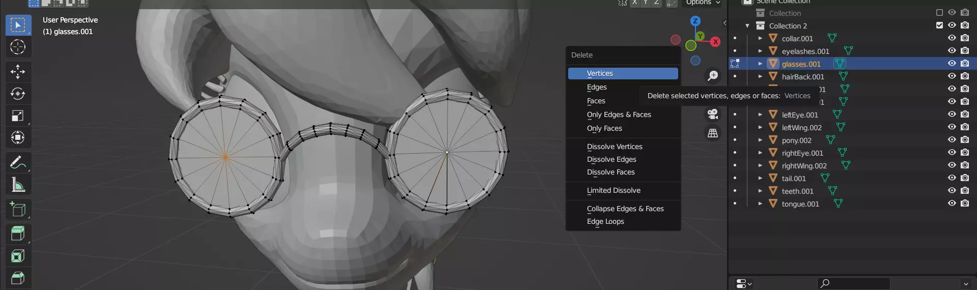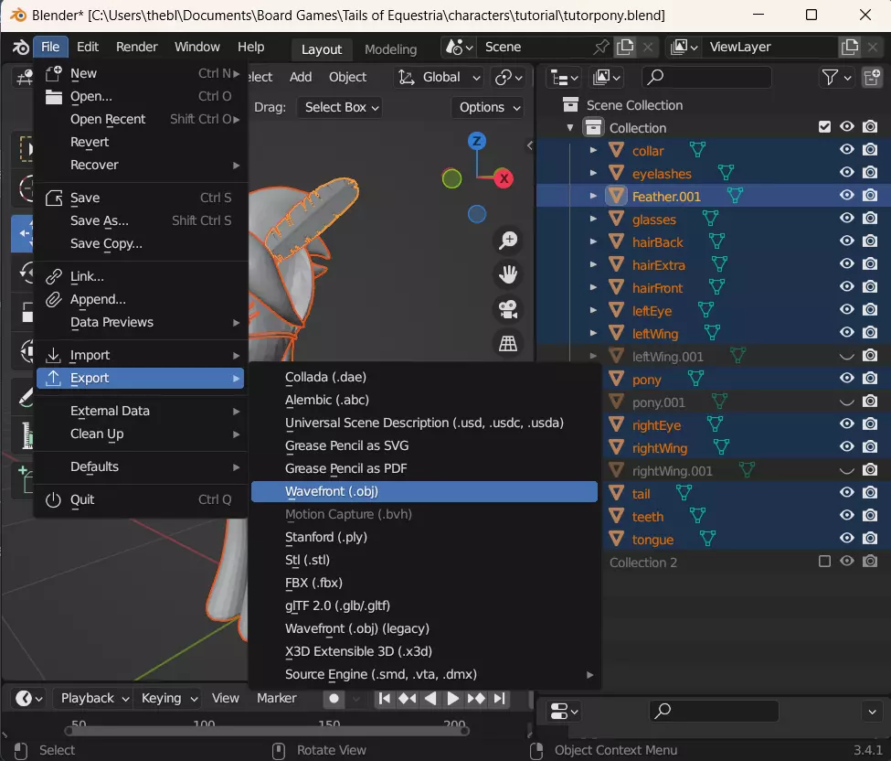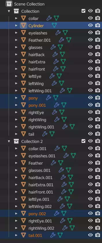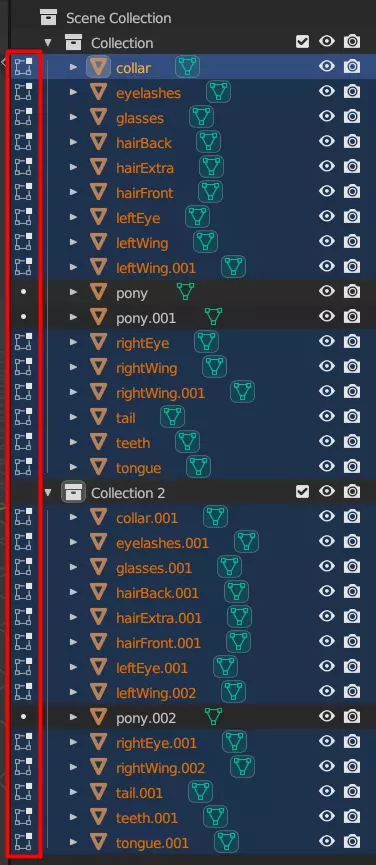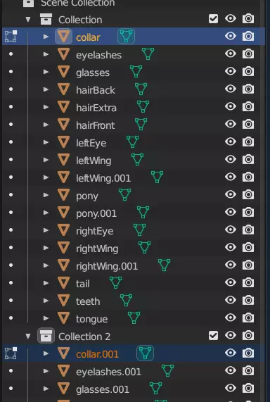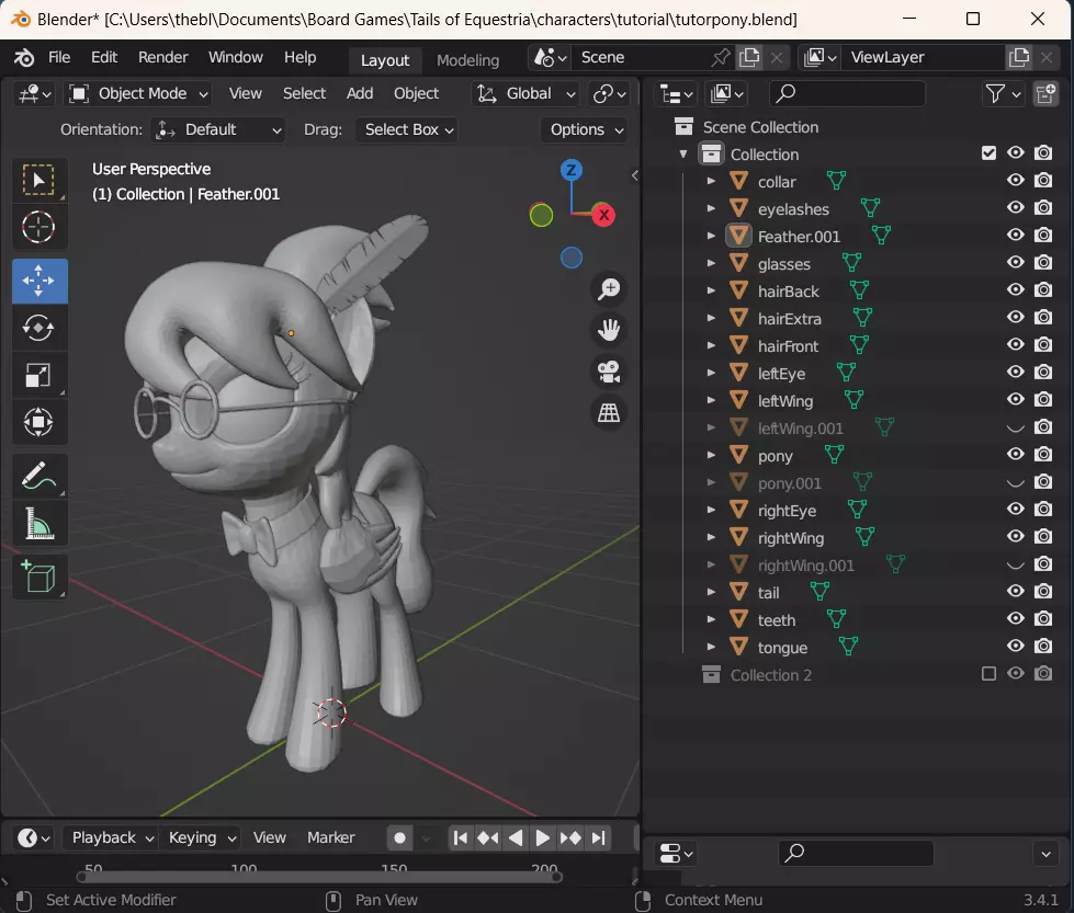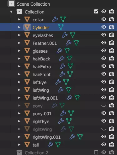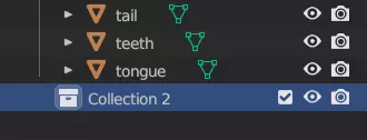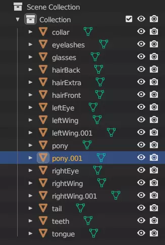 至少对于这个网格,你已经完成了。Blender没有办法批量为多个网格设置此工具,所以必须逐个进行操作。不过,有些网格完全可以跳过。舌头和牙齿都位于小马的嘴部内部,因此不需要成为碰撞层的一部分。