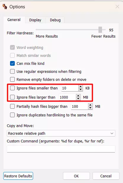 接下来,点击“更多选项”,并确保程序不忽略任何内容。