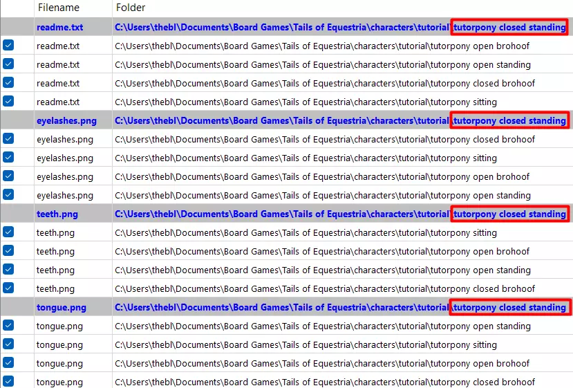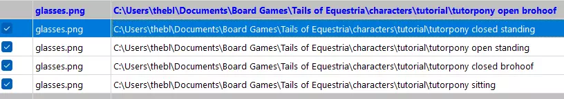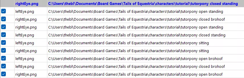 当然,如果你还记得的话,我们在清理重复文件时,有些网格文件关联到了完全相同的纹理文件,这些我们已经过滤掉了。这种情况下,最好同时处理它们。在我们的案例中,这些文件就是左眼和右眼,以及左翼和右翼。