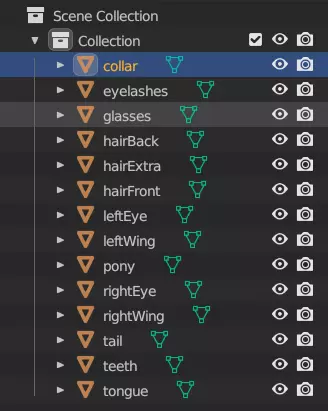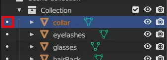 好了,完成了。保存并进入下一步。 步骤6:导出主要网格 现在可见部分已处理完毕,是时候导出了。 保持在对象模式下,点击右侧列表中的眼睛图标,确保只有你实际想要用于姿势的部分是可见的。