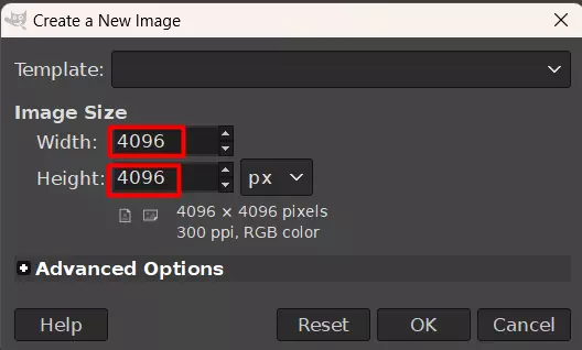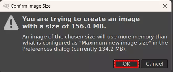 将文件尺寸设为4096×4096像素,然后点击确定。你可能会收到一条提示文件大小超出限制的消息,只需忽略它并点击确定即可。