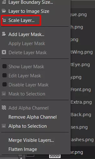 你可能会忍不住裁剪多余的空间,但请不要这样做。除非你想从每侧精确裁剪一半,使其保持正方形。否则任何其他操作都会让后续步骤变得更加复杂。相反,你最好填充多余的空间。 对于较小的项目,在图层查看器中右键点击它们,然后点击“缩放图层”。