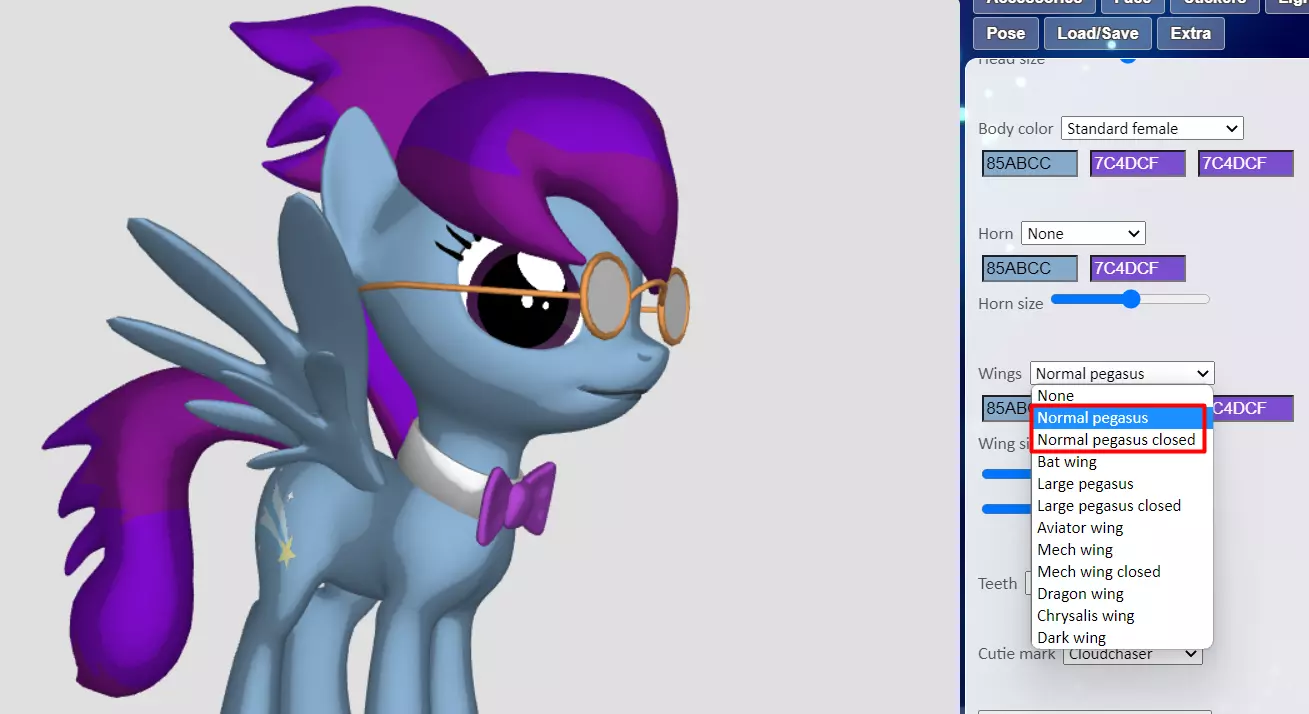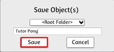 将其保存到放置小马存档文件的同一文件夹中,并为其命名一个独特的名称,例如“站立小马.zip”。对另外两个姿势执行相同操作,并使用合适的名称保存,例如“坐姿小马”和“蹄击小马”。如果你的小马有翅膀,你还需要保存每个姿势翅膀张开和闭合的版本。