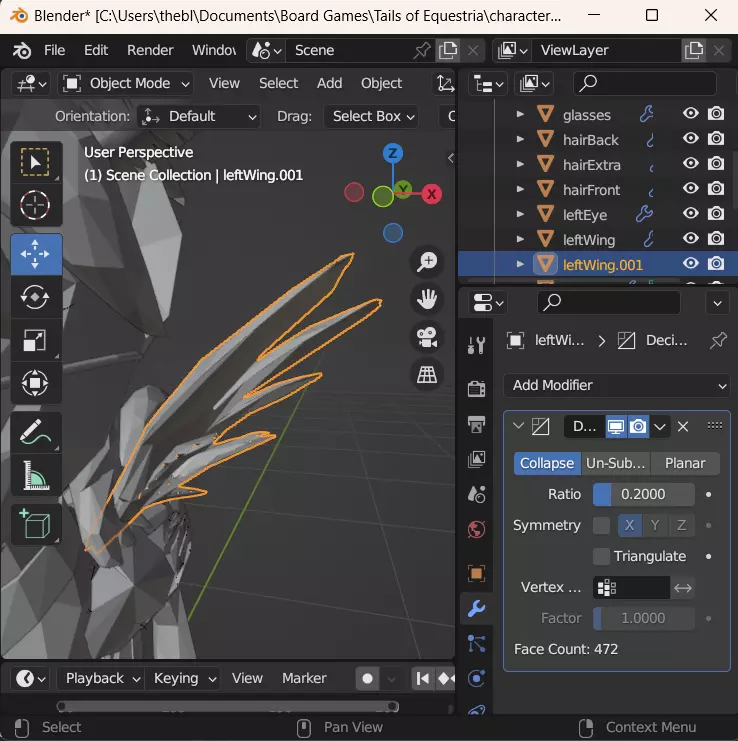 所以你可以删除那些。 之后你可能会注意到一些网格看起来相当破旧,比如翅膀或头发。