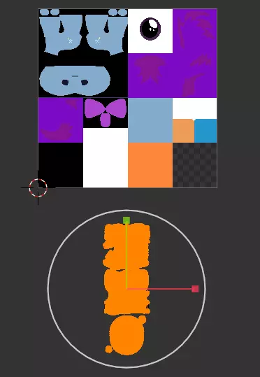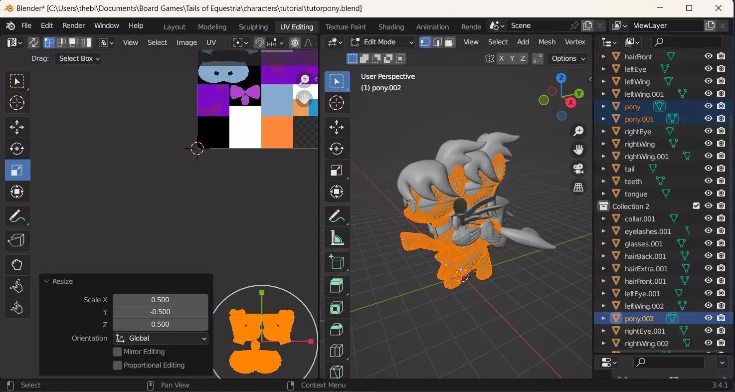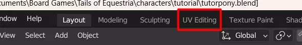 由于某些原因,3D小马编辑器中提供的纹理的UV贴图是垂直翻转的。本操作旨在修正此问题。或者,你也可以直接垂直翻转纹理,但就个人而言,我更喜欢这种方法,因为它能保持眼睛纹理的正确朝向。现在它们的尺寸都正确了,但位置完全不对。