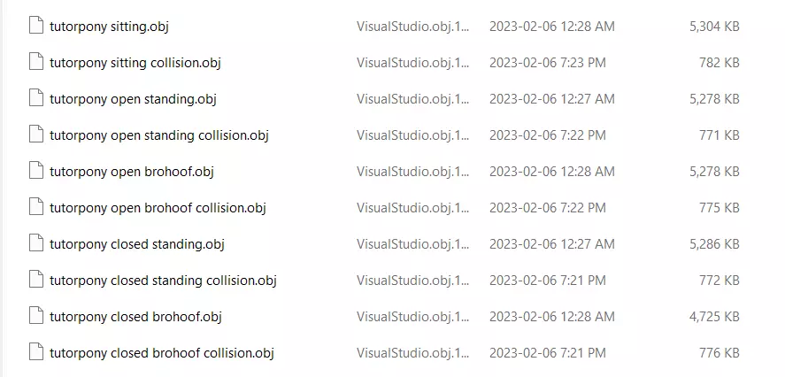 这样,我们就拥有了所需的全部OBJ文件。每个姿势对应两个文件。