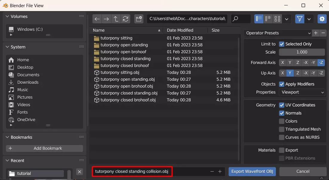 导出它,然后对剩余的姿势重复此过程。最后,每个姿势都会生成一个OBJ文件。