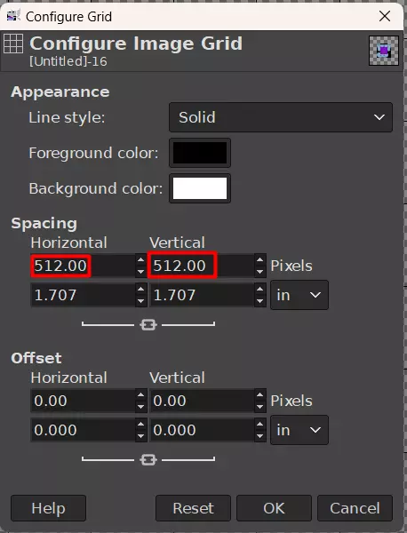 将垂直和水平间距设置为512×512。