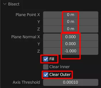 你需要使用的设置很简单。平面点应设为(0,0,0),平面法线应设为(0,0,-1)。你还需要勾选“填充”和“清除外部”,但不要勾选“清除内部”。