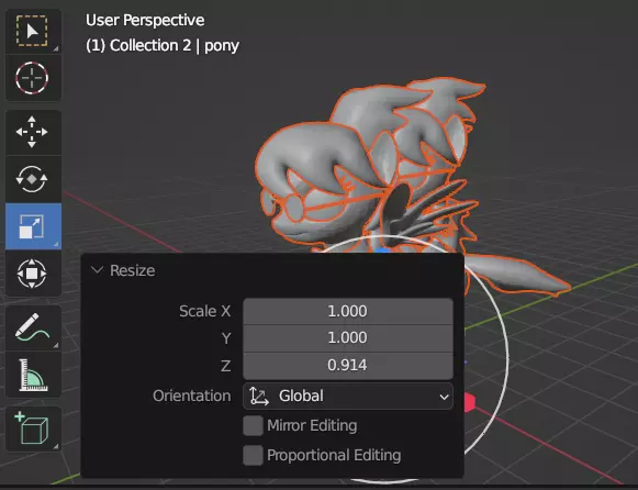 目前,我们先不管它,专注于调整其余组件的大小。在我们的案例中,就是小马的主体部分,它占据了一半的高度和一半的宽度。调整过程完全相同,只是我们要将其高度和宽度缩小到0.5倍。