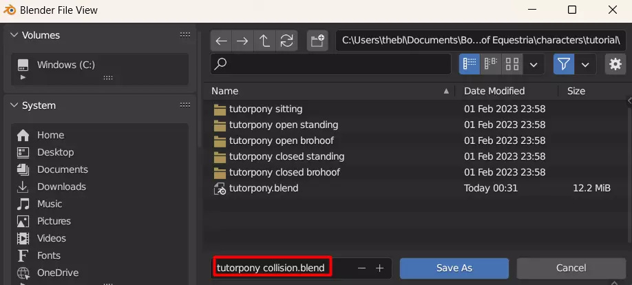 保存Blender文件,然后点击“另存为”创建副本,并为其命名一个略有不同的名称。