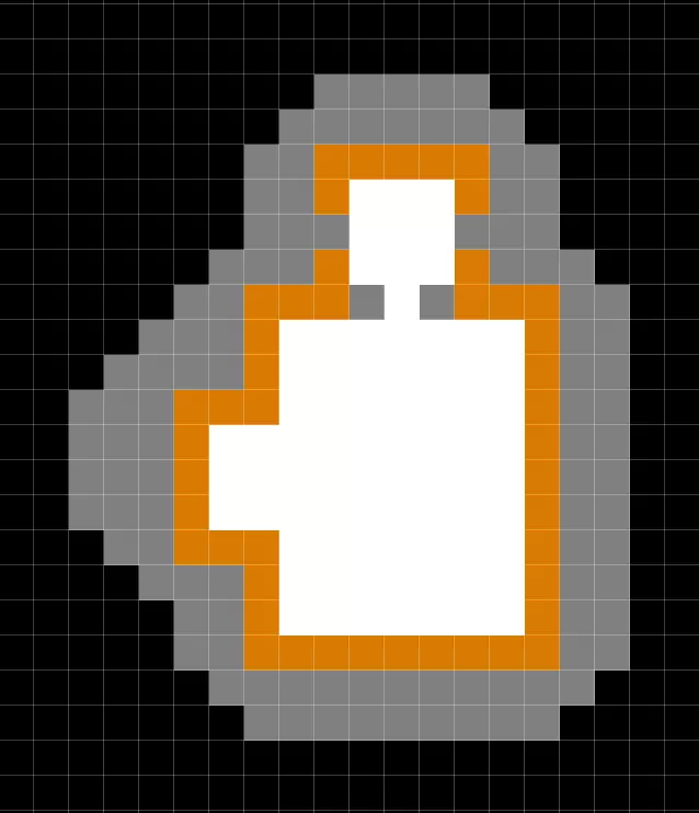 灰色区域是挖掘区或地下室。白色区域是塌方区域。随着挖掘的持续进行,塌方会逐渐发生,我发现使用一个(设置为石灰岩的)储物区来标记塌方区域会很有帮助。然后你可以从储物区开始数3个方格,以此确定需要挖掘的区域。一旦掌握了方法,你就可以创建更复杂的形状。我通常会在末端添加一个3×3的区域来放置楼梯。我还会在主房间添加壁龛,以便安置一些大型工作站。
