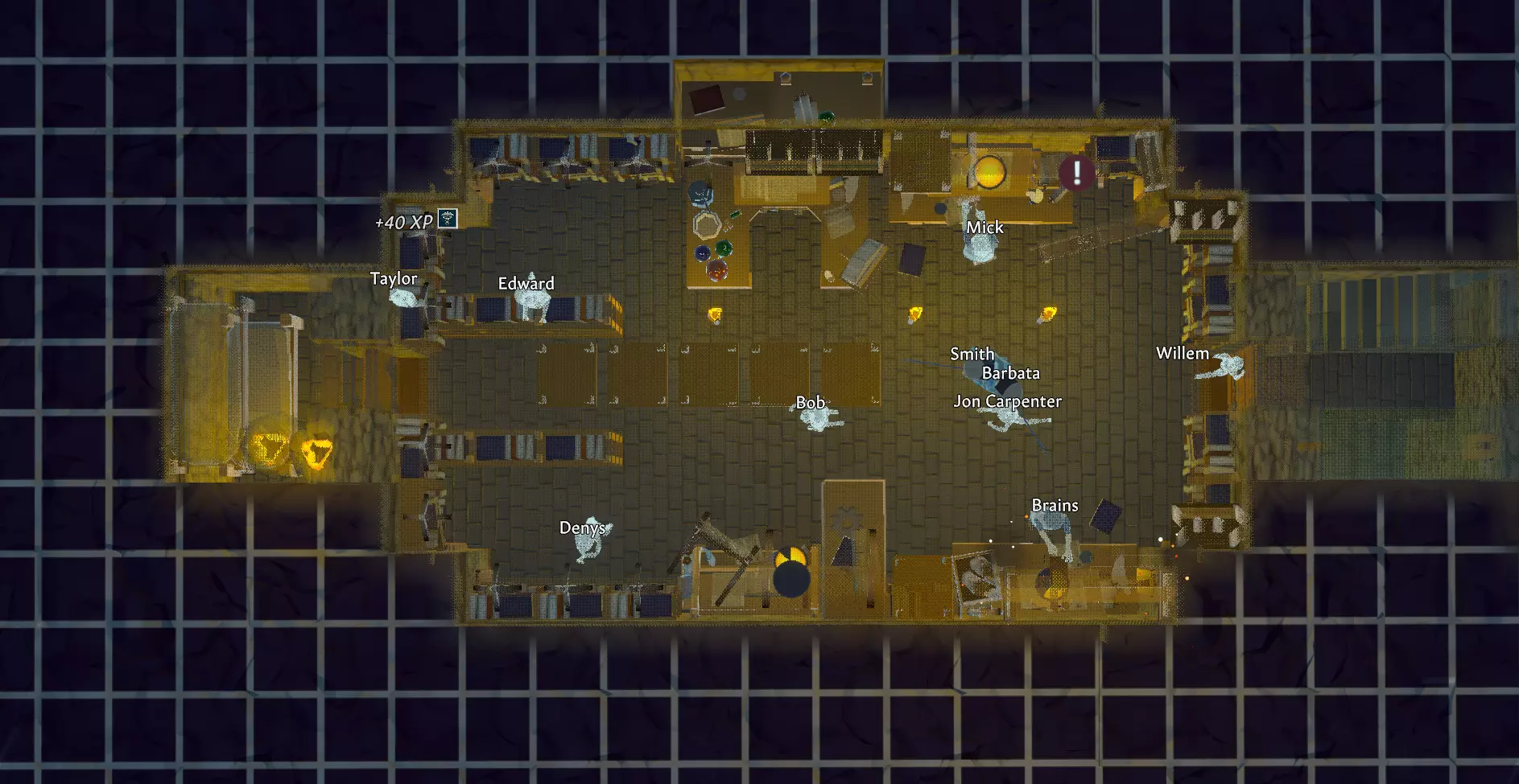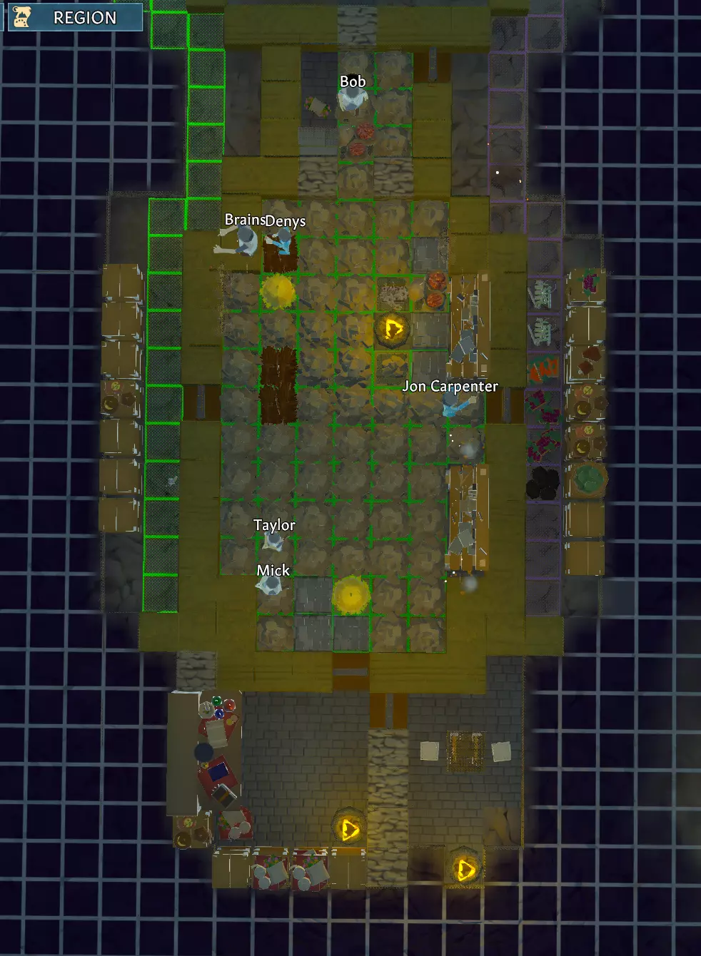 你可以开始规划你的楼层,从下往上构思,我的筒仓大致是这样的: 6层 - 地下室 - 食物储存与石灰石 7层 - 木工与裁缝工坊 8层 - 公共卧室 9层 - 餐饮厨房 10层 - 大厅与礼拜堂 11层 - 图书馆 12层 - 金属加工工坊 13层 - 屋顶 - 肉类熏制 你可以挖得更深,设置更多楼层,但对我来说这样已经足够了。 如果我们查看房间图例,就能在三维空间中辨认出筒仓的形状。