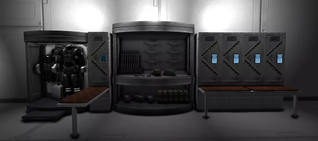 风格:经典/高科技 Eikesters 装饰包 内含大量家具,包括沙发、盆栽蕨类植物、台球桌、架子、马桶等…… 撰写本文时,Eikester 仍在为该包添加更多家具。部分道具带有复古风格,例如“太空侵略者!”街机。不过,包内也包含足够的经典家具,适用于高科技风格的项目。 风格:经典/复古 Hammerman 准备站(由 Shaostoul 维护) 包含普通储物柜、一些太空服储物柜和一个军械库储物柜。我特别喜欢太空服储物柜,非常适合装饰气闸舱。