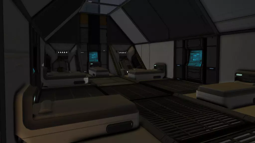 军官的船员宿舍。他们的空间和隐私不如船长,但至少每个人都能使用自己的信息终端。