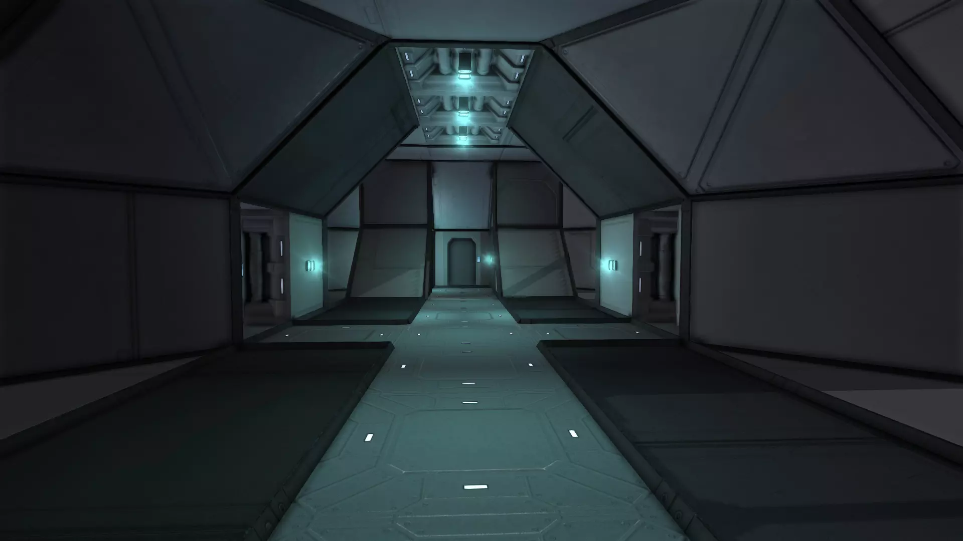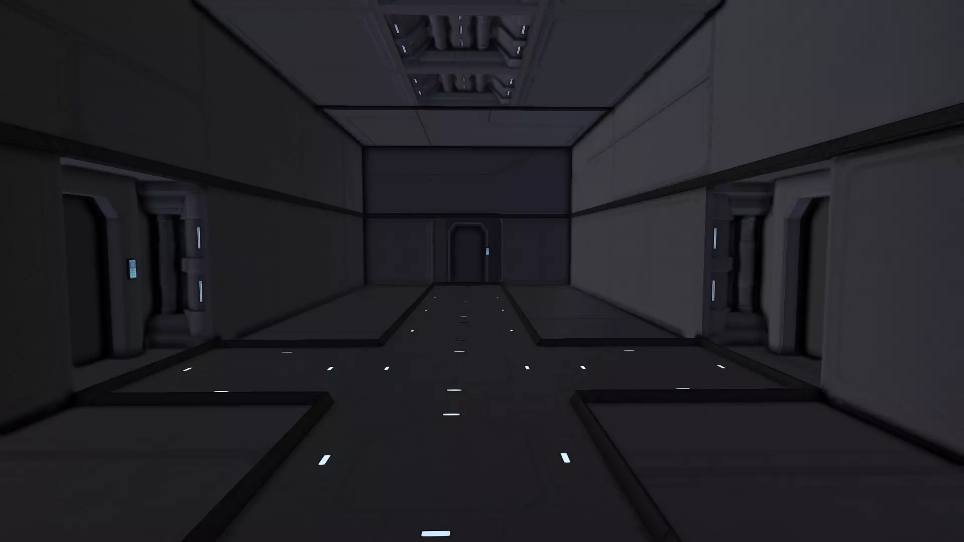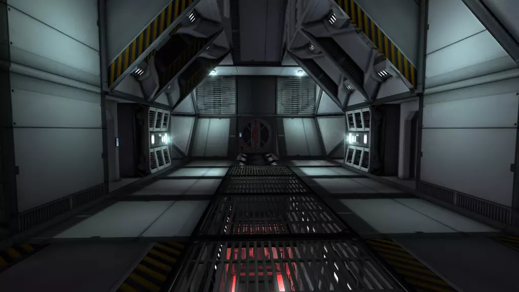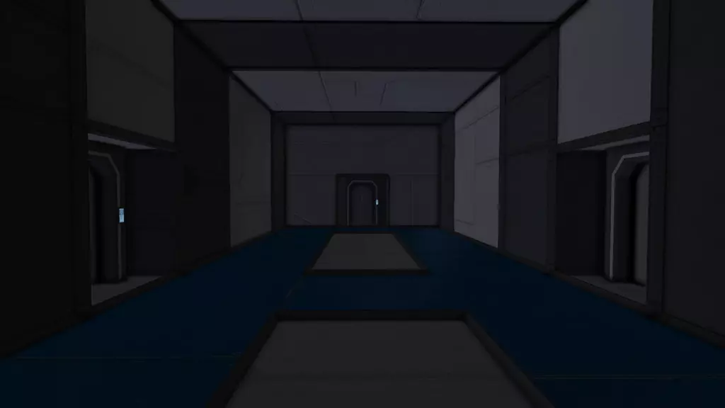 在本指南中,我将向你展示如何改进大型飞船或空间站的内部。打造美观内饰的关键在于添加细节:通过色彩、纹理、结构(立柱、格栅、窗户等)、照明和模组。我建造了这条简单的走廊作为示例:
