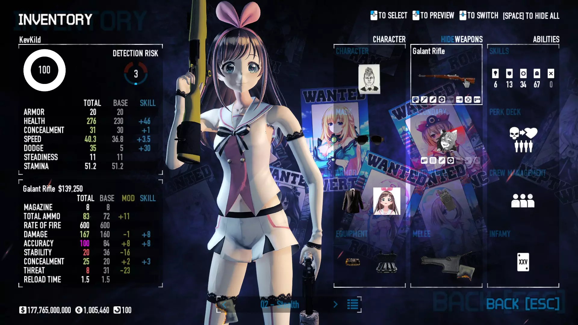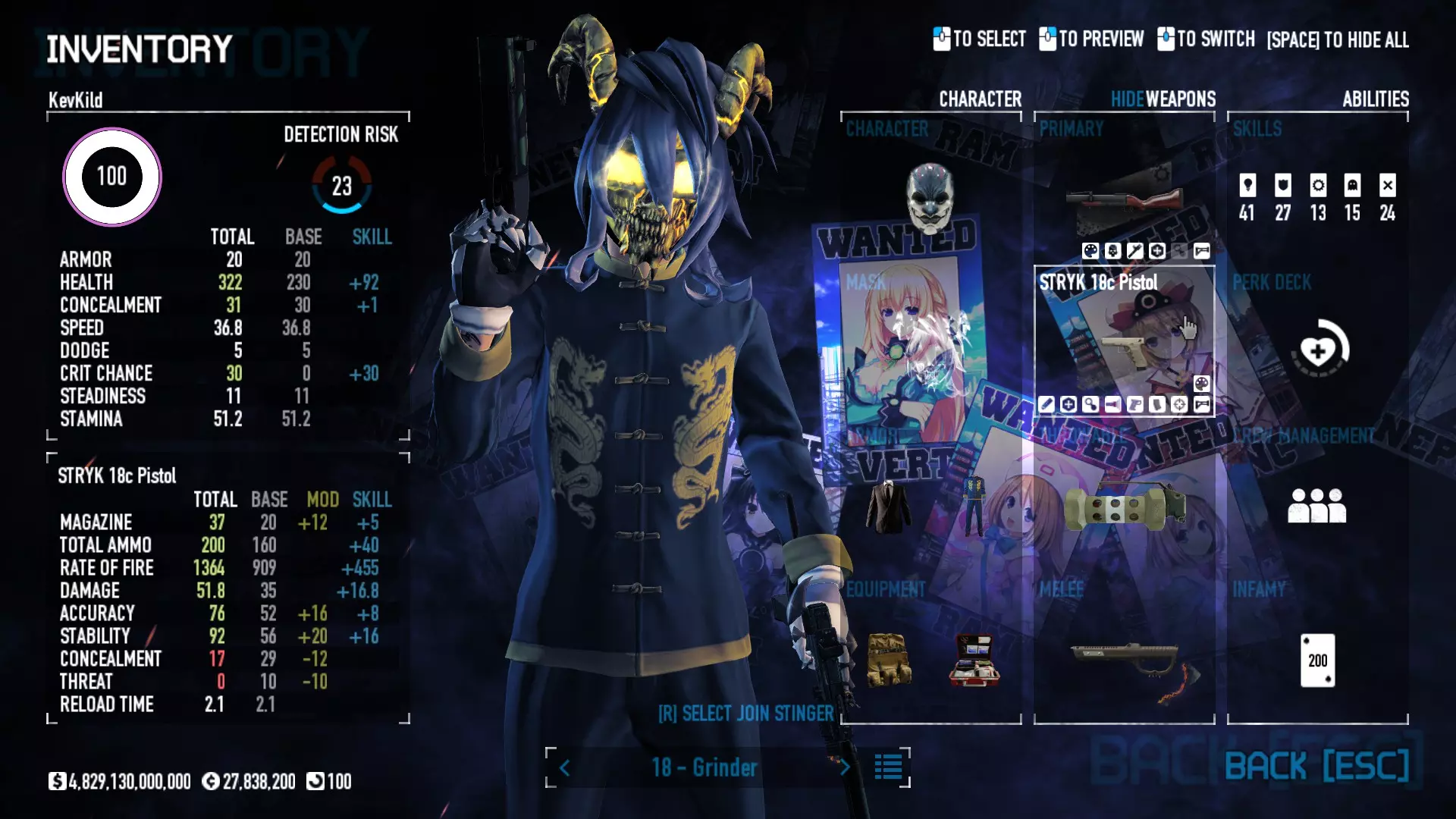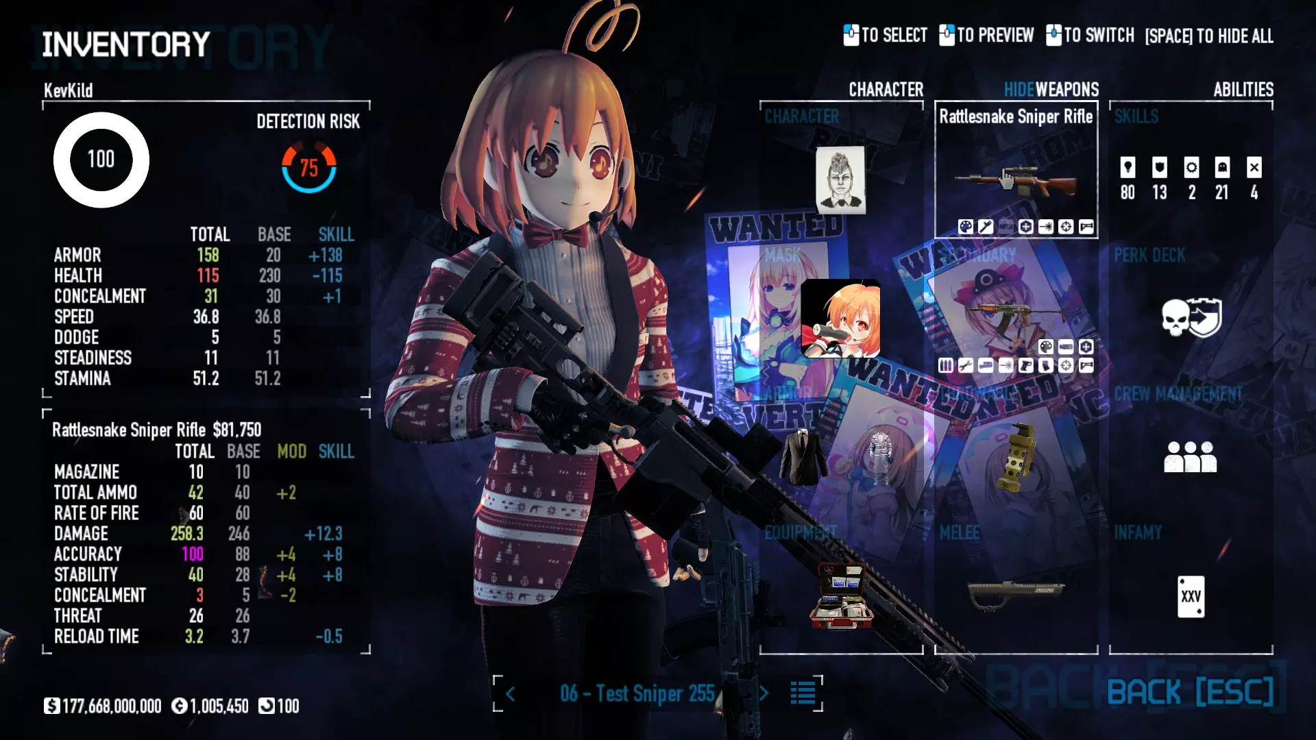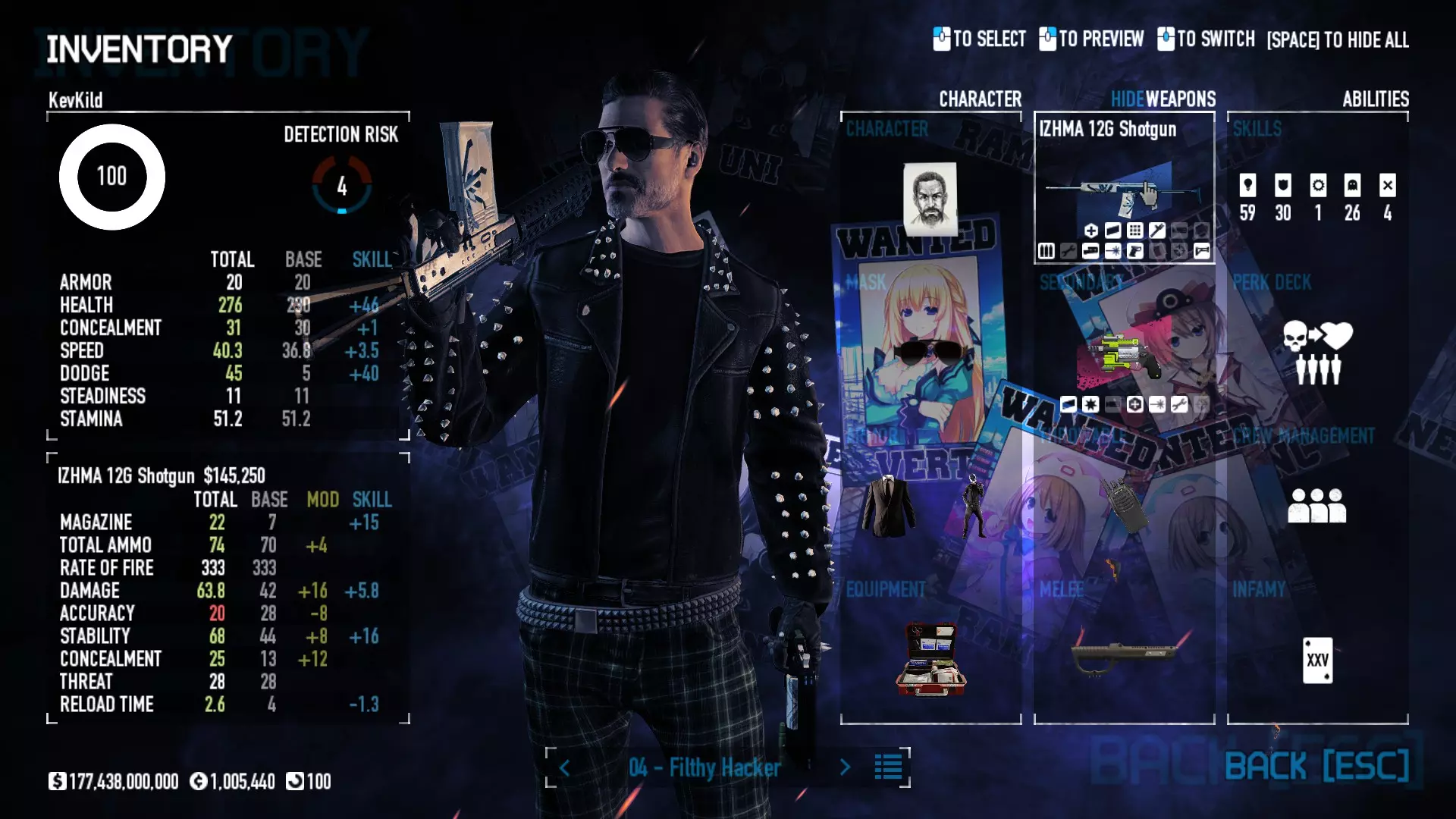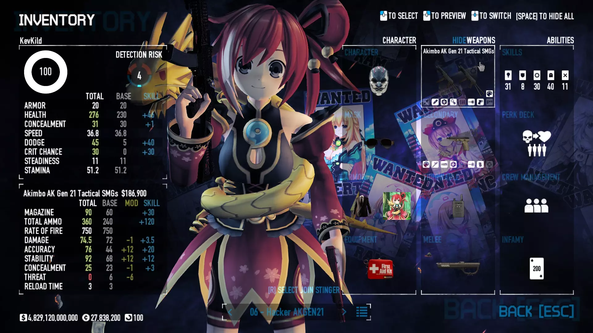 Secondary Weapon Grimm 12G Shotgun Attachments Dragon’s Breath Round Shark Teeth Nozzle Boost – Team Boost Auto Fire LED Combo Big Brother Magazine Compact Holosight – Dot 2Equipment Armor: Suit Deployable: Trip Mine & Doctor Bag Throwable: Concussion Grenades Melee: Buzzer/Electrical Brass KnucklesNotes & Videos Carry Potential: Transports Only https://pd2builder.netlify.app/?s=1G1e10d0e110383g00120150-4h00&p=e&a=0&t=4&d=3 You could run this as support build for saw-able heists, but wasted DPS potential Mod Link Section Moved my PasteBin section here for convenience and if anyone wants to play with above builds. == mods Folder == SuperBLT[superblt.znix.xyz] BeardLib[modworkshop.net] VanillaHUD Plus[modworkshop.net] VoidUI[modworkshop.net] FreeFlightCam[modworkshop.net] Low Violence Mode[modworkshop.net] Music Control[modworkshop.net] AntiCrash[pd2mods.z77.fr] NoScreenShake(Shooting)[modworkshop.net] Cloaker Camera Kick Disable[modworkshop.net] More Skill/Profiles[modworkshop.net] BagTilt Disable[modworkshop.net] CrimeNET Border removal[modworkshop.net] Skill Tree Background[modworkshop.net] Tast's DayNight Changes[modworkshop.net] LabRats Blankets[modworkshop.net] AutoFire SFX Fix[modworkshop.net] Sensitivity Fixer[modworkshop.net] No Down Counter[modworkshop.net] Mute Menu Contractors[modworkshop.net] == Assets Mod_overrides == Neptunia HyperHud[modworkshop.net] Neptunia Diff icons[modworkshop.net] Neptune Jacket Skin[modworkshop.net] Hoxton Evidence Room[modworkshop.net] Neptunia Breakout Screen[modworkshop.net] Neptunia GAGE Pack[modworkshop.net] Neptunia Alesso Heist[modworkshop.net] Neptunia Bank Texture[modworkshop.net] Neptunia Medic Bag[modworkshop.net] Neptunia FirstAid Kit[modworkshop.net] Neptunia Graffiti[modworkshop.net] Neptunia Trashbins[modworkshop.net] Neptunia Infamy Card[modworkshop.net] Neptunia PC screen[modworkshop.net] Neptunia Van[modworkshop.net] Nep Cloaker Spawn SFX[modworkshop.net] Nekopara Artgallery[modworkshop.net] Nekopara Lootbag[modworkshop.net] Nekopara Icons[modworkshop.net] Astolfo Body Bag[modworkshop.net] Astolfo Body Bag Case[modworkshop.net] BL2 Text/Hud[modworkshop.net] Touhou Interaction Circle - Modifed[modworkshop.net] Hikari Takanashi Glass SFX[modworkshop.net] 199.5 Sleeve Fix[modworkshop.net] HD-Texture Project[modworkshop.net] KizunaAI Sydney SFX[modworkshop.net] KizunaAI Mask Standalone[modworkshop.net] Sora AoS2 Mask Standalone[modworkshop.net] Shimakaze Mask Replacement[modworkshop.net] Neptunia Masks Standalone[modworkshop.net] Neptunia Masks - Teamwork[modworkshop.net] COD:MW2 Intervention Sound[modworkshop.net] COD:MW2 .50 Cal Sound[modworkshop.net] COD:MW2 M1014 Sound[modworkshop.net] COD:MW 2019 Gun SFX[modworkshop.net] Astolfo ICU drill[modworkshop.net] OwO Dozer[modworkshop.net] Portal Sentry[modworkshop.net] SONG:Touhou Pack1[modworkshop.net] SONG:Touhou Pack2[modworkshop.net] Ahegao Universal Skin[modworkshop.net] FEDNET Weapon Icons LEFT[modworkshop.net] Nepgear Commando 101[modworkshop.net] DSOD Nisa Mask Charm[modworkshop.net] DSOD Nisa Mask[modworkshop.net] KS12 Spinny Reload[modworkshop.net] LAS[modworkshop.net] Kizuna AI LAS[modworkshop.net] Gawr Gura LAS[modworkshop.net] Neptunia Characters LAS[modworkshop.net] Neptunia Characters LAS2[modworkshop.net] All my other mod_overrides MediaFire links are blocked by Steam. You can get them on my YouTube mod list video showcase. - Briefing Video removal - SecurityCams, First Weeb Bank, Loading Screens 2019 - Nisa Mask - Nisa Mask (WithCape) - Nisa Pissed Mask - Nisa Sword Buzzer - Nisa Sword IcePick - Prinny Concussion ~ Created Mods ~ TripMine Houston[modworkshop.net] TripMine OOF[modworkshop.net] Cirno Theme remix[modworkshop.net] Marisa Theme remix[modworkshop.net] AoS2 Expendables[modworkshop.net] Remilia Theme remix[modworkshop.net] Momiji Theme remix[modworkshop.net] Flandre Theme remix[modworkshop.net] Grand Design[modworkshop.net] Other Great DSOD Guides My recommendation for other DSOD guides on Steam, as well as their content.