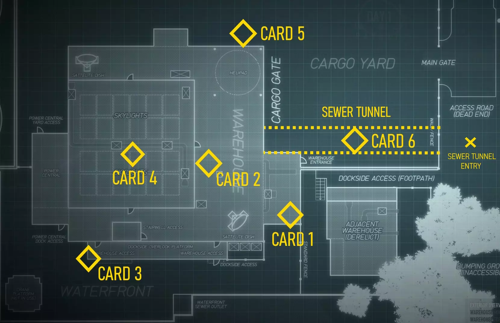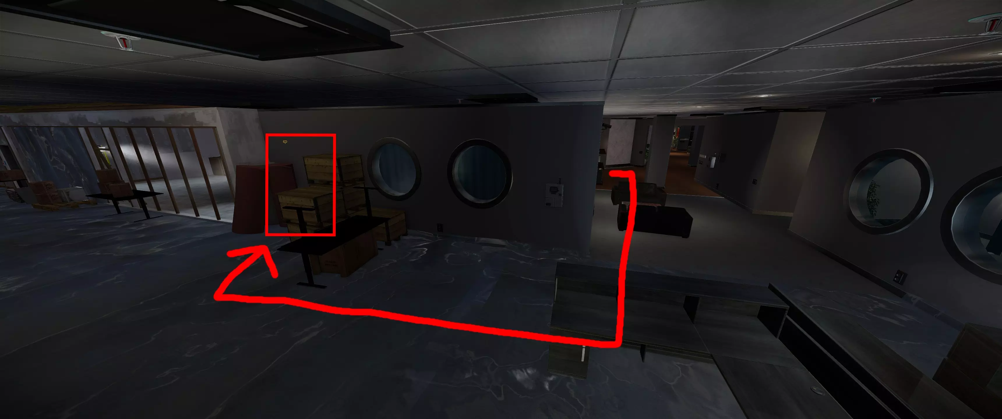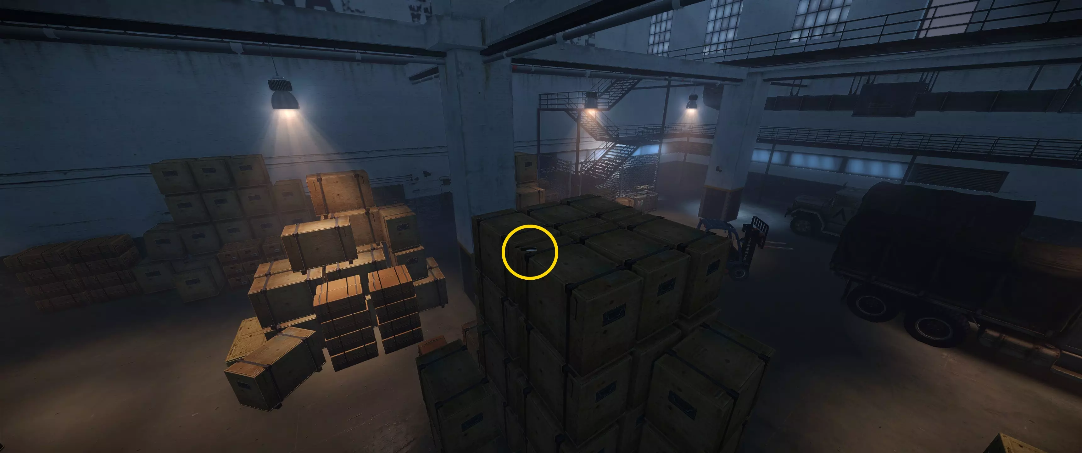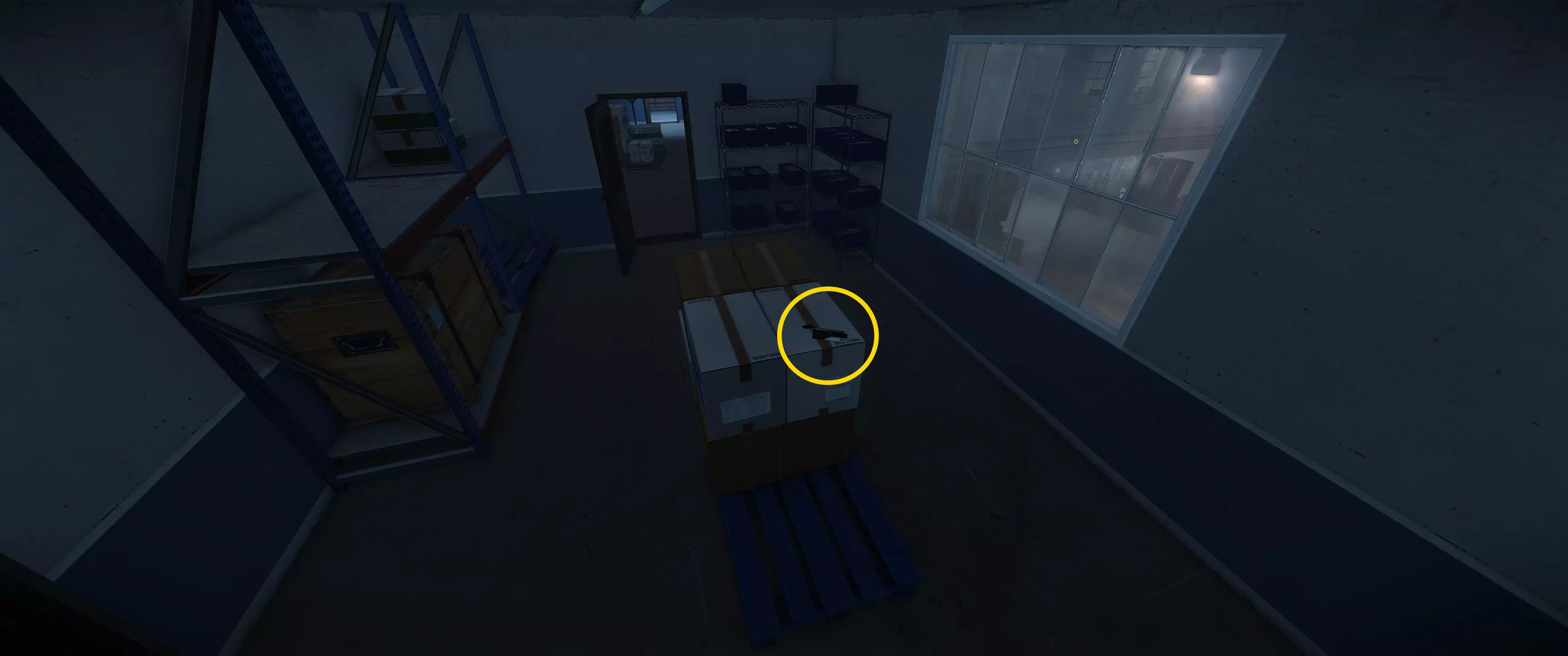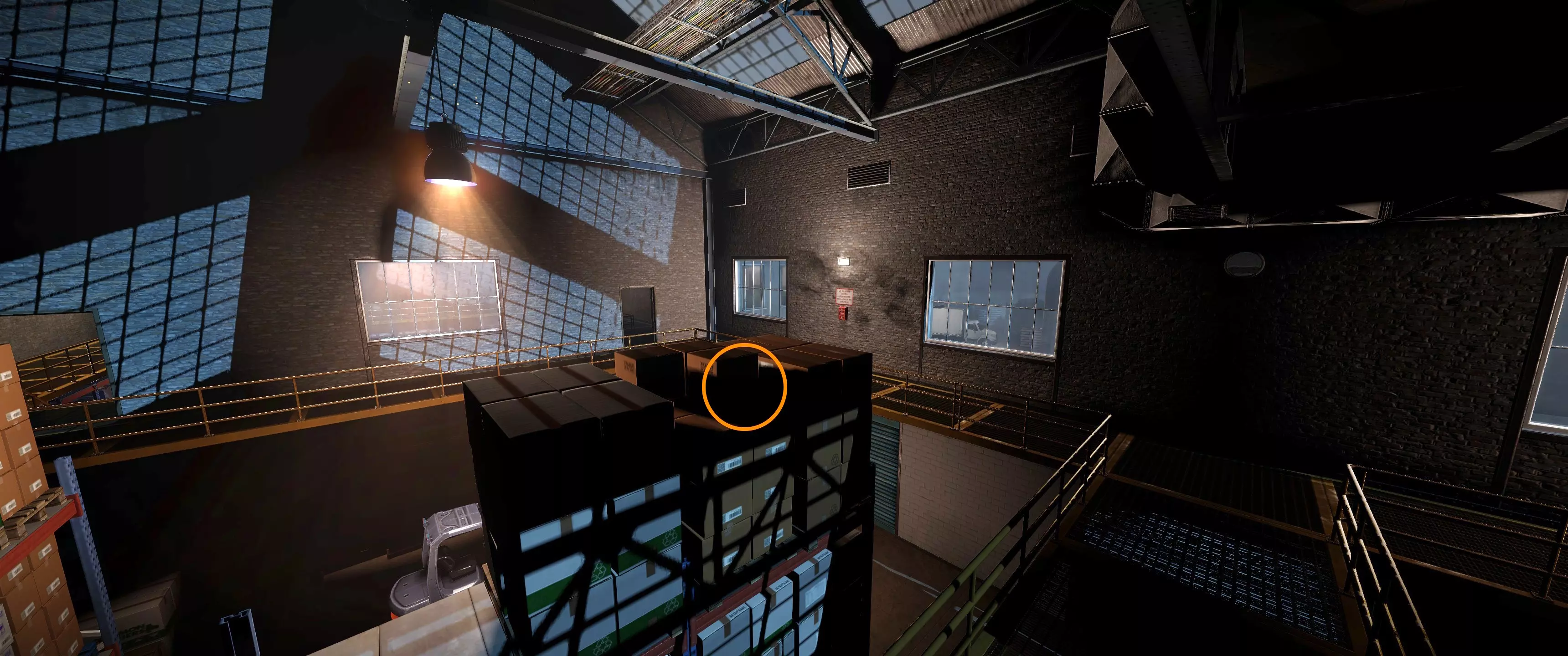 特殊门禁卡4 | 在仓库中央的大型板条箱堆上 (!)你可能需要从天花板跳下来才能到达这个地方