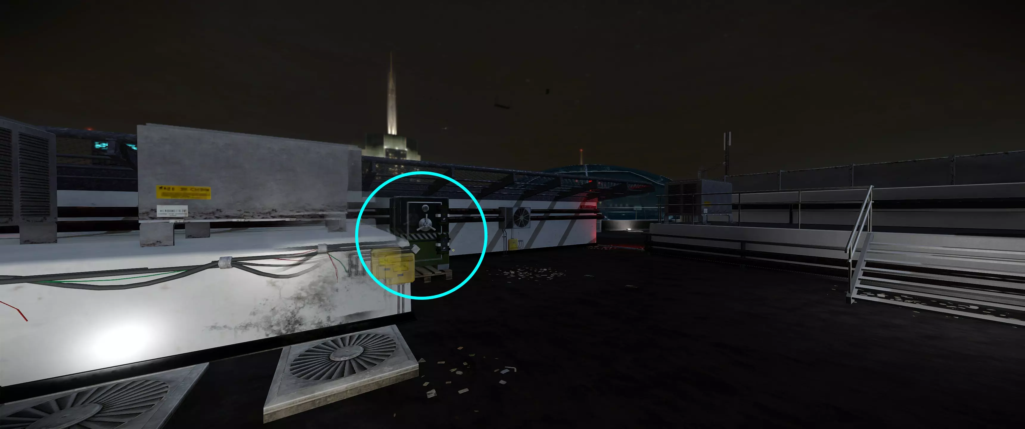特殊门禁卡5 | 外部,屋顶直升机停机坪旁的蓝色集装箱上