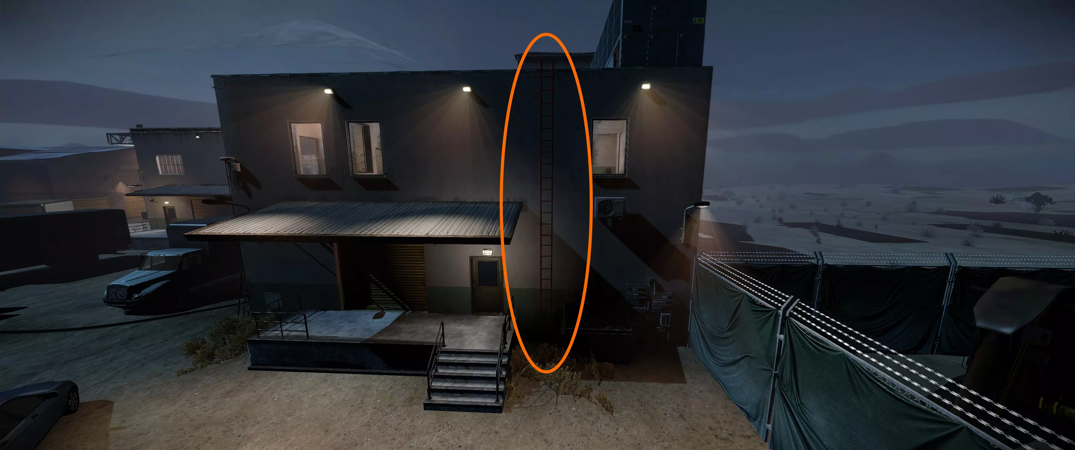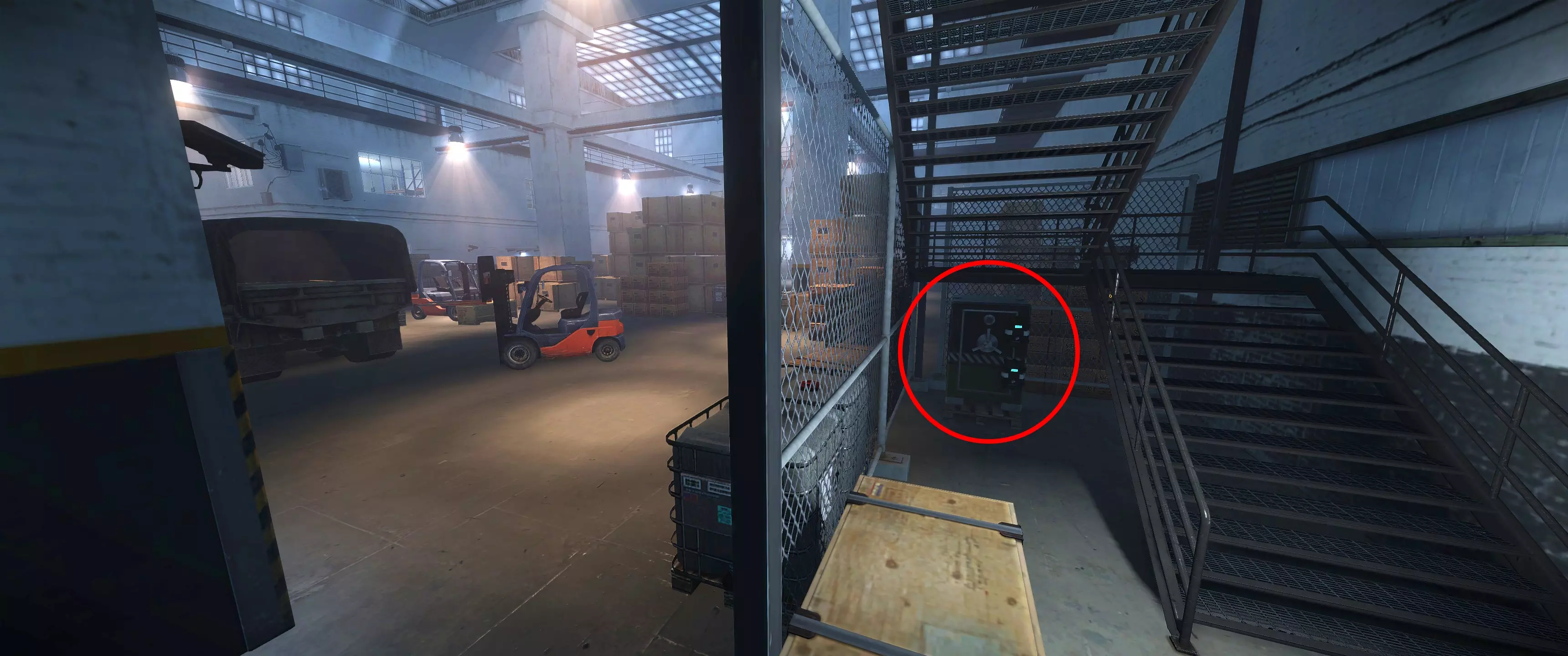 安全区域 3 | 北仓库二楼,外部螺旋楼梯旁
