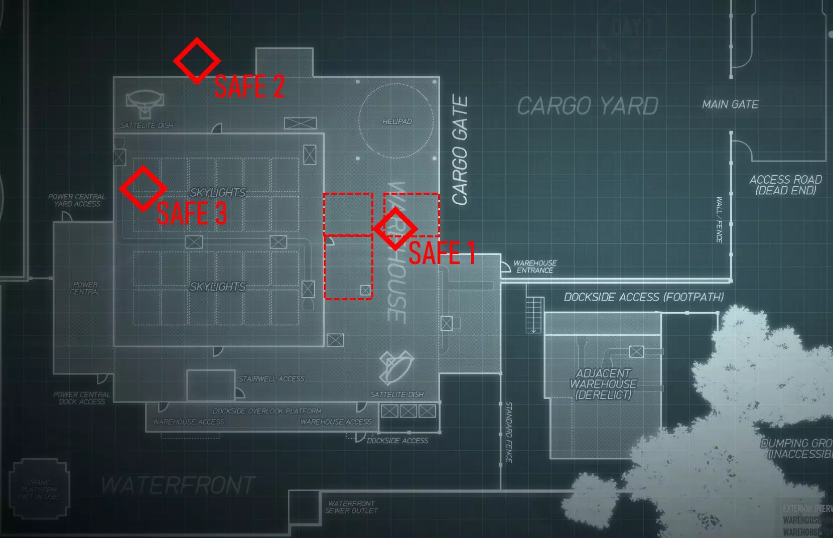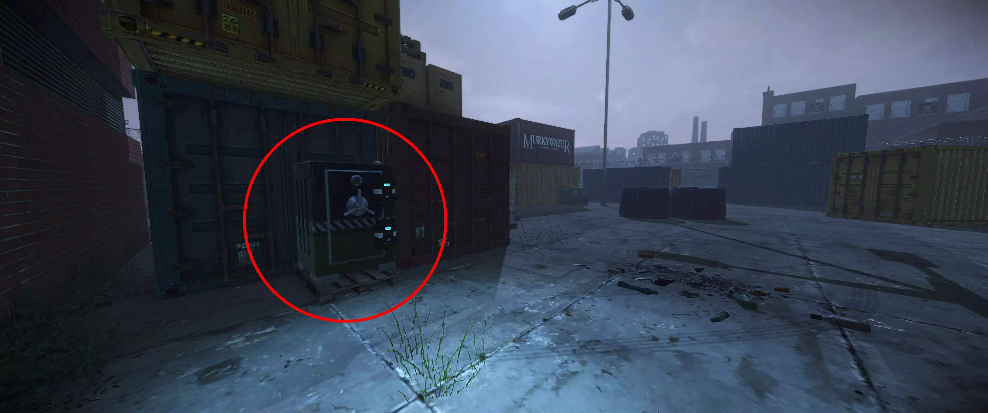 安全屋 2 | 外部,倚靠在俯瞰集装箱堆场的仓库旁