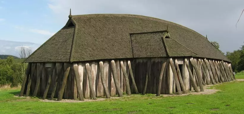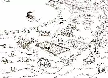 农场中的长屋 维京人的房屋以木材建造。长屋的墙体在平面上呈弧形,形成类似船只的轮廓。墙体内部衬有黏土,或由垂直插入地面的木板构成,这些木板与两排内部立柱共同支撑屋顶。房屋外部常由倾斜的支柱加固。屋顶为斜坡式,可覆盖茅草或木板。 房屋中央设有一个长方形的壁炉——长壁炉,这里是烹饪食物的地方。沿墙摆放着木板床,维京人可在此坐卧。若农场没有单独的马厩,房屋的一端会设有畜栏来饲养牲畜。 维京人会不断修缮他们的房屋。潮湿是最大的敌人,因为它会导致木材腐烂。然而,他们也懂得通过烧灼房屋的柱子来保护木材。