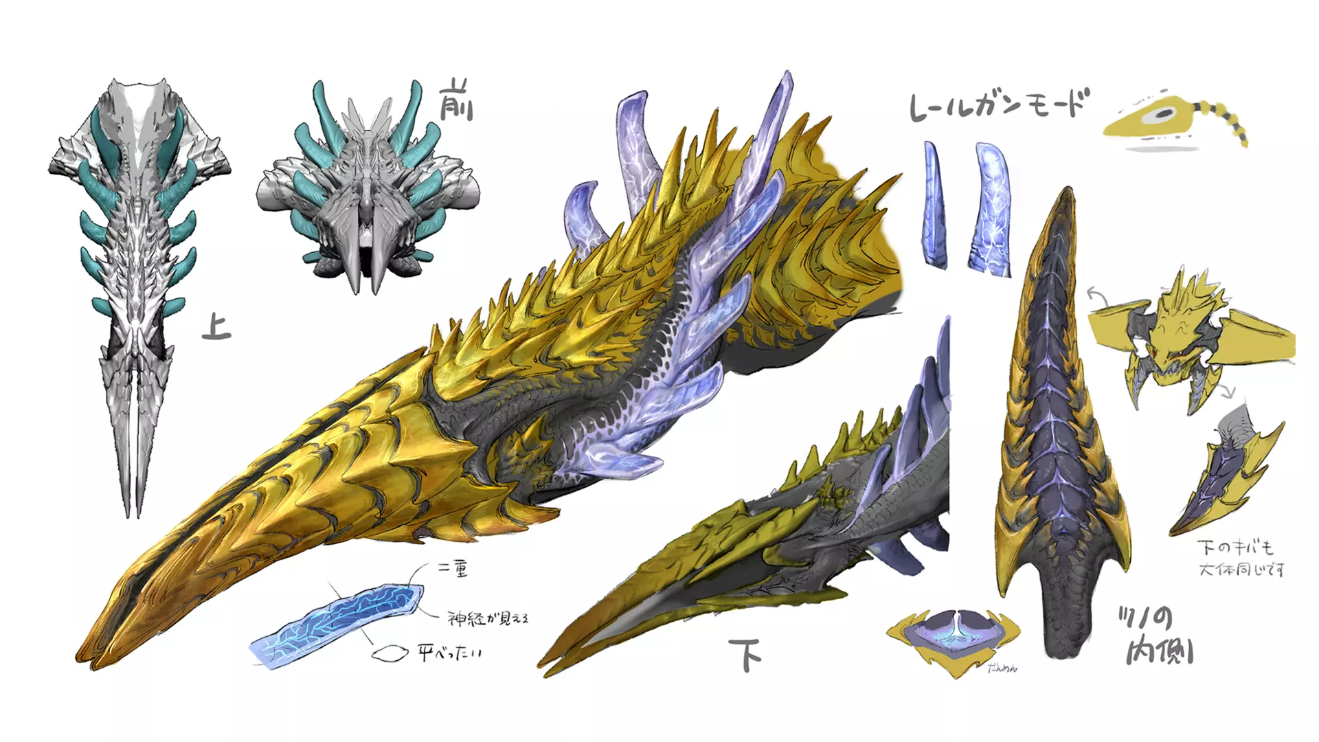 各位猎人,狩猎进行得如何? 今天,在12月16日《怪物猎人:荒野》免费标题更新4发布之前,我们想与大家分享一些游戏开发过程中的幕后概念艺术图! 首先,我们来回顾一下《怪物猎人:荒野》总监德田优也最近在“2025巴黎怪物猎人祭典”活动中进行的“雷王大师课”演讲内容,之后我们将一同了解阿尔克维尔德和伍伍德的创作过程! 雷王大师课回顾 *请注意,本节所示图片中的信息均来自开发阶段,可能与最终成品存在差异。 雷王作为风蚀平原的 apex predator(顶级掠食者)统治着这片土地。让我们来逐一了解雷王的各个部位。它的头部和嘴巴具有掠食者的独特形状,锋利的牙齿旨在撕裂草食性怪物。其可活动的毒牙和颌部结构灵感源自蜈蚣的颚足。 [carousel]