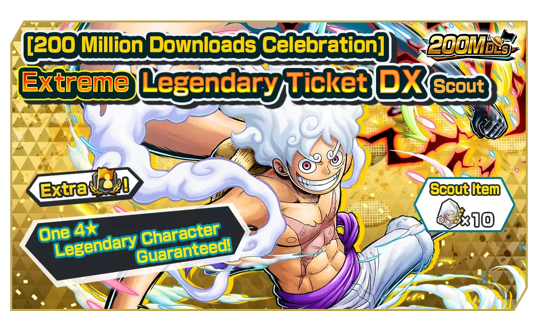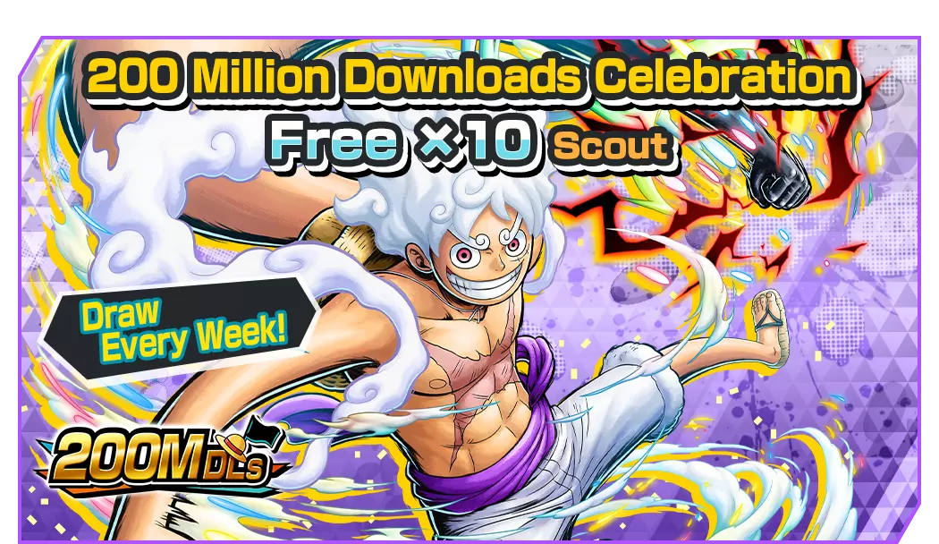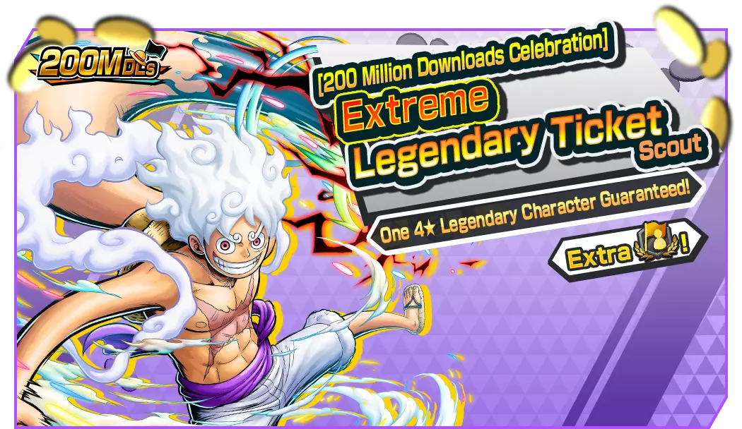 仅移动端限定的20连招募,可使用【2亿下载纪念】极限传奇票DX进行抽取!保底1名传奇角色。可获得四皇·蒙奇·D·路飞碎片!*活动期间此招募的票券最多可购买18次。*此招募无法在Steam®版使用。*Steam®版用户可通过多账号登录在移动端参与此招募。■ 2亿下载纪念免费10连招募