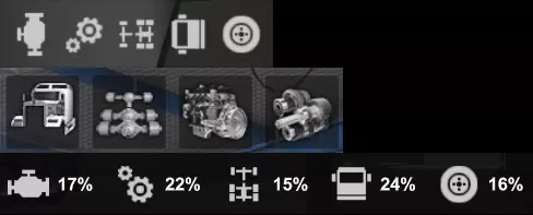 本指南将详细介绍SCS在1.49版本更新中为《美国卡车模拟》/《欧洲卡车模拟2》引入的全新损伤系统。 前言。 本指南面向所有希望了解全新损伤系统工作原理以及SCS计划如何维护其卡车的玩家。但它也面向模组制作者以及所有希望深入了解游戏内部机制的玩家。顺便一提,本指南是针对《美国卡车模拟》编写的,因为我所有的研究都是在该游戏中进行的,但它同样适用于《欧洲卡车模拟2》。两者之间可能存在细微差异,但总体而言,相同的概念适用于这两款游戏。在本指南中,我将尽力详细解析新损伤系统的工作原理。我通过查看文件以及在游戏中尝试多种操作才完成了这项工作。我还尝试将游戏概念与现实世界联系起来,以便更容易理解。但由于我并非真正的卡车司机,这里可能存在一些错误。如果您发现任何问题,请告诉我,我会相应地更新指南。同时请注意,此功能是最近才推出的,因此SCS在未来可能会做出一些调整。我会尽可能努力保持本指南的时效性。 卡车和挂车的零部件。所有货运卡车均由五个不同的零件组构成: 发动机 变速箱 底盘 驾驶室 车轮 除车轮外,所有零件均为卡车的核心部件,因此当它们作为整体被提及时常被称为主要零件。