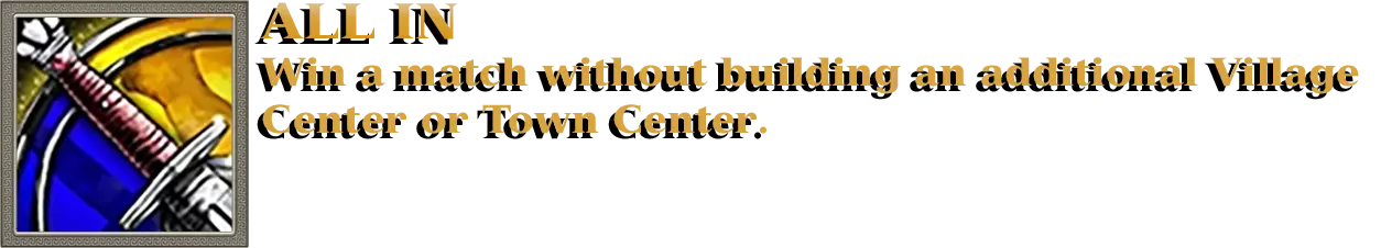 训练一支仅由步兵组成、不包含神话生物的军队,并摧毁城市中心。每次您的部队开始强攻城市中心时,都会播放动感音乐。累计摧毁3个城市中心即可获得成就。