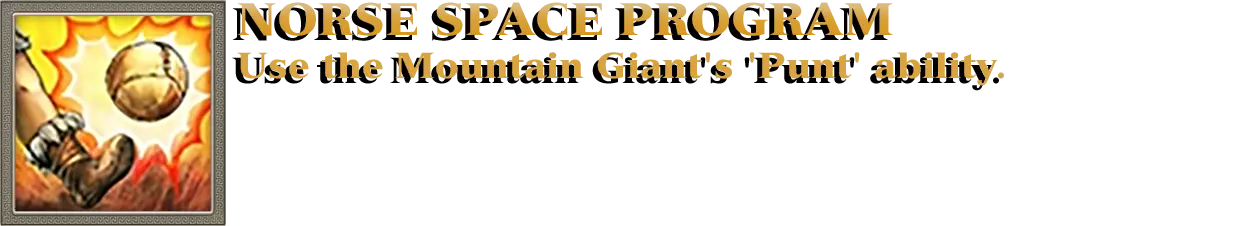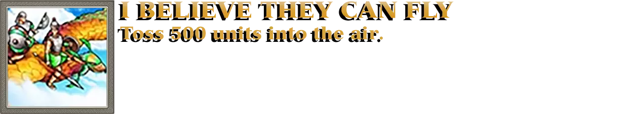 将敌人击飞到空中是游戏的战斗机制之一。大多数大型神话单位都拥有能够击飞步兵或普通部队的技能。游戏中的每个泰坦都具备同样的能力,而某些神力,例如“陨石冲击”,也能将部队击飞到空中。你需要在任意数量的游戏中,无论游戏模式如何,总共向空中投掷500个任意部队。
