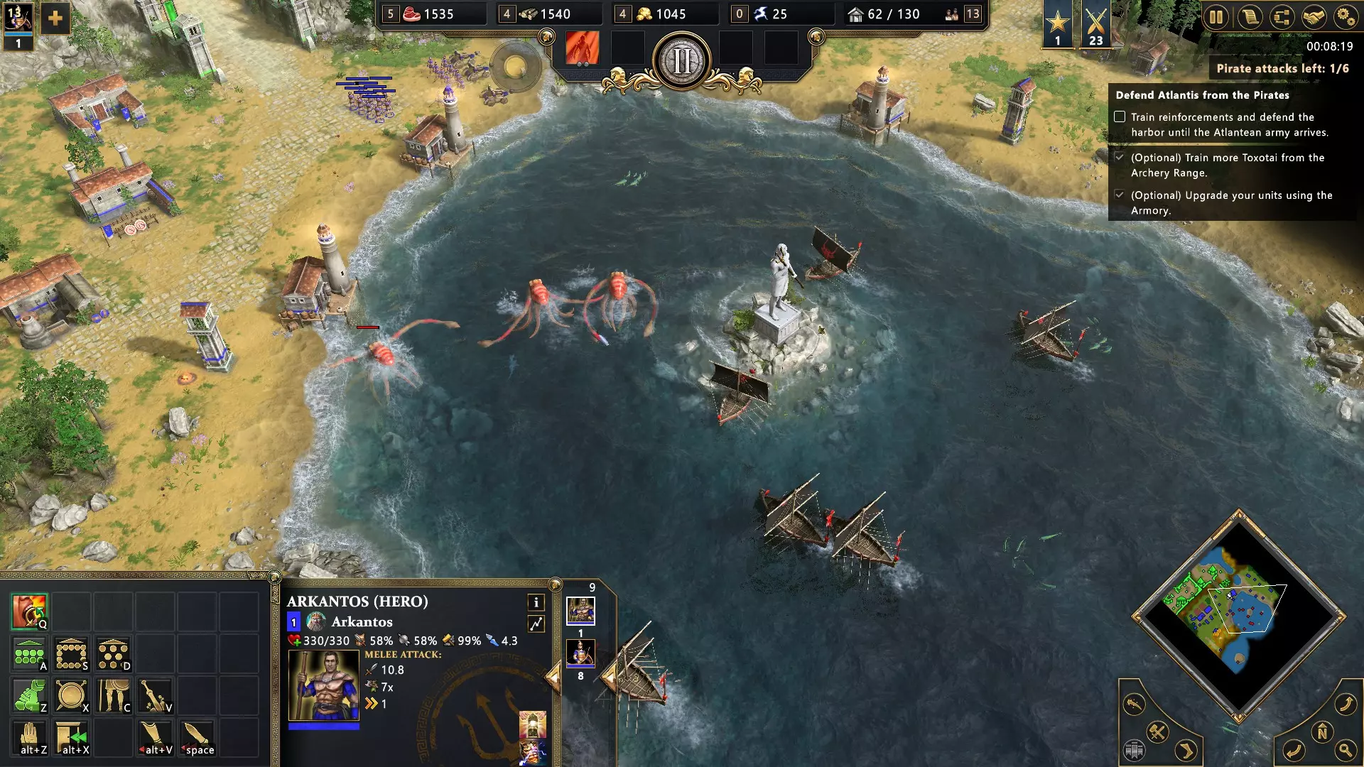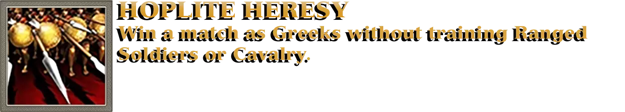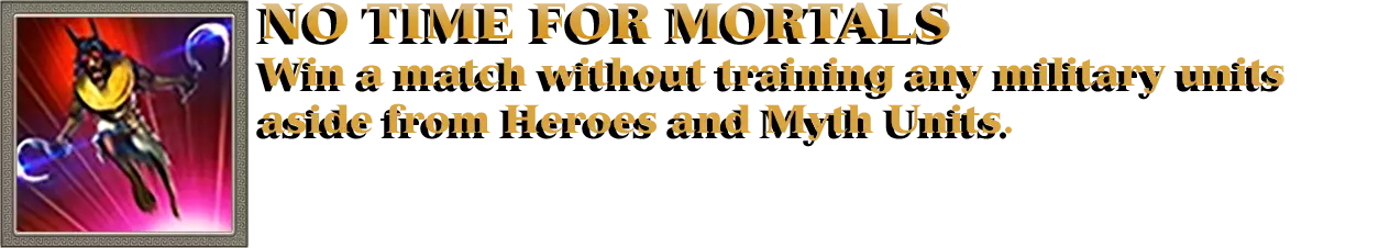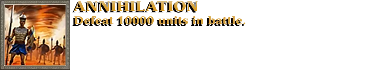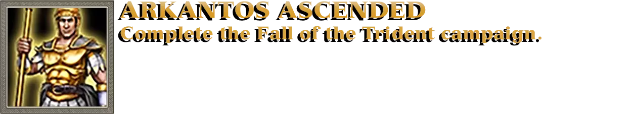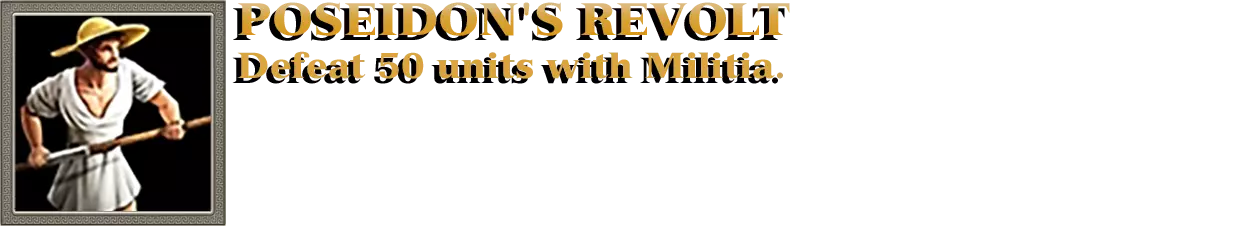 开始以海神波塞冬作为至高神进行对战。每当波塞冬的任何一座建筑被摧毁时,废墟中都会出现民兵部队。这些部队由玩家控制,因此可以向他们下达命令。你需要用民兵部队消灭50支任意敌方部队;该成就可累积计数。