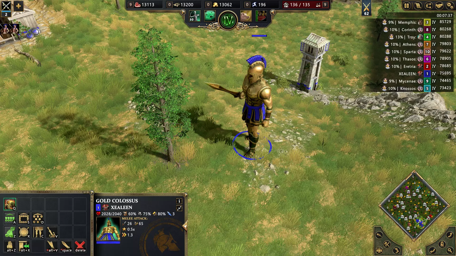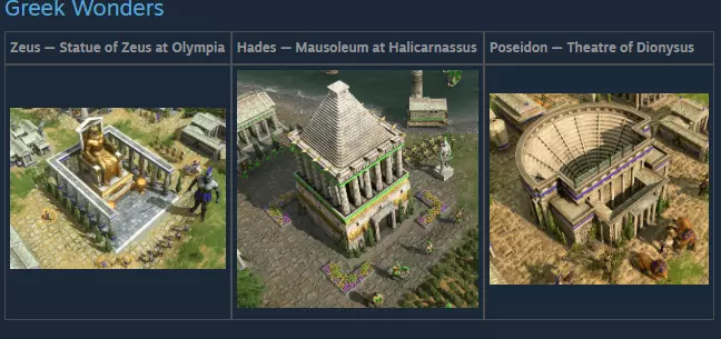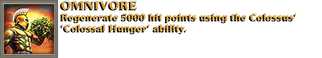 开始匹配,选择任意希腊神明作为主神。进入神话时代并选择赫菲斯托斯作为从神,以在你的神庙中解锁神话单位巨像的训练。受损的巨像可以通过吞噬树木和金矿来恢复生命值。利用此技能累计恢复至少5000点生命值。