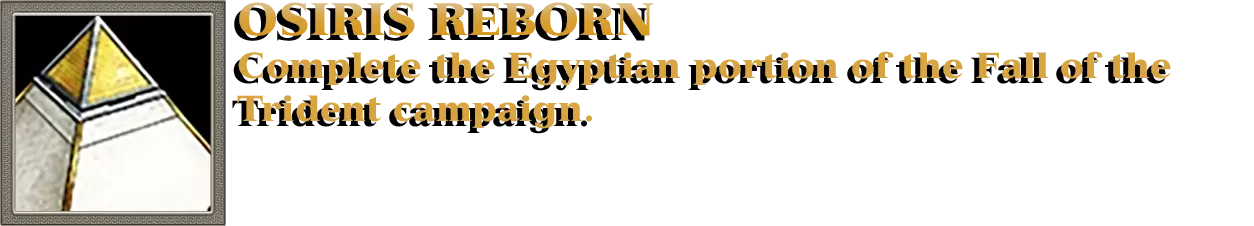 和上一个成就一样,我们需要完成战役的一部分,但是!这次是为了埃及人 11.失落的圣物 12.敏锐的睡眠 13.残酷的战争 14.“伊西斯,聆听我的祈祷” 15.前进! 16.好建议 17.胡狼堡垒 18.远离家乡 19.艰难的第一步 20.他们就该在那里 21.老朋友