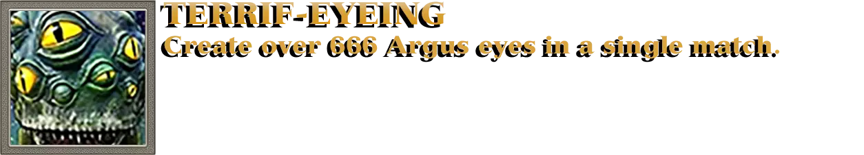 开始匹配,选择克洛诺斯或盖亚作为主神。进入神话时代并选择阿特拉斯作为次神,以在神庙中解锁神话单位阿尔戈斯的训练。阿尔戈斯能够向敌人喷吐酸液并将其淹没在酸液中。这种生物有大量眼睛,确切数量未知,但大约有30只,因此要获得成就,您需要20多个阿尔戈斯。