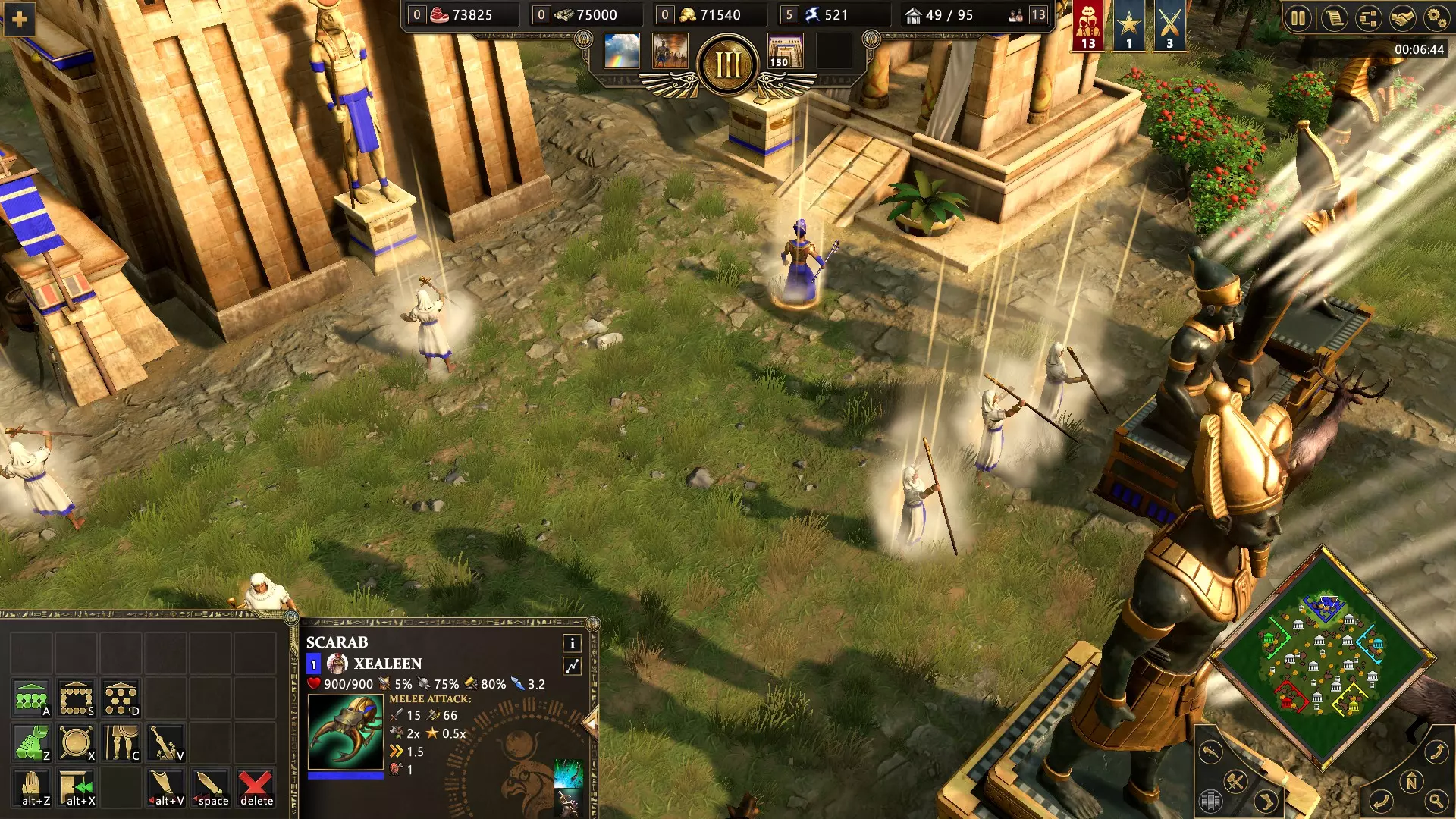 选择拉作为主神开始匹配。拉的祭司可以强化建筑,例如法老,尽管效果较差。但这仍然可行,因此你需要训练14名祭司+法老以及15座建筑来强化它们。选择拉作为主神开始匹配。拉的祭司可以强化建筑,例如法老,尽管效果较差。但这仍然是可能的,因此你需要训练14名祭司+法老以及15座建筑来强化他们。