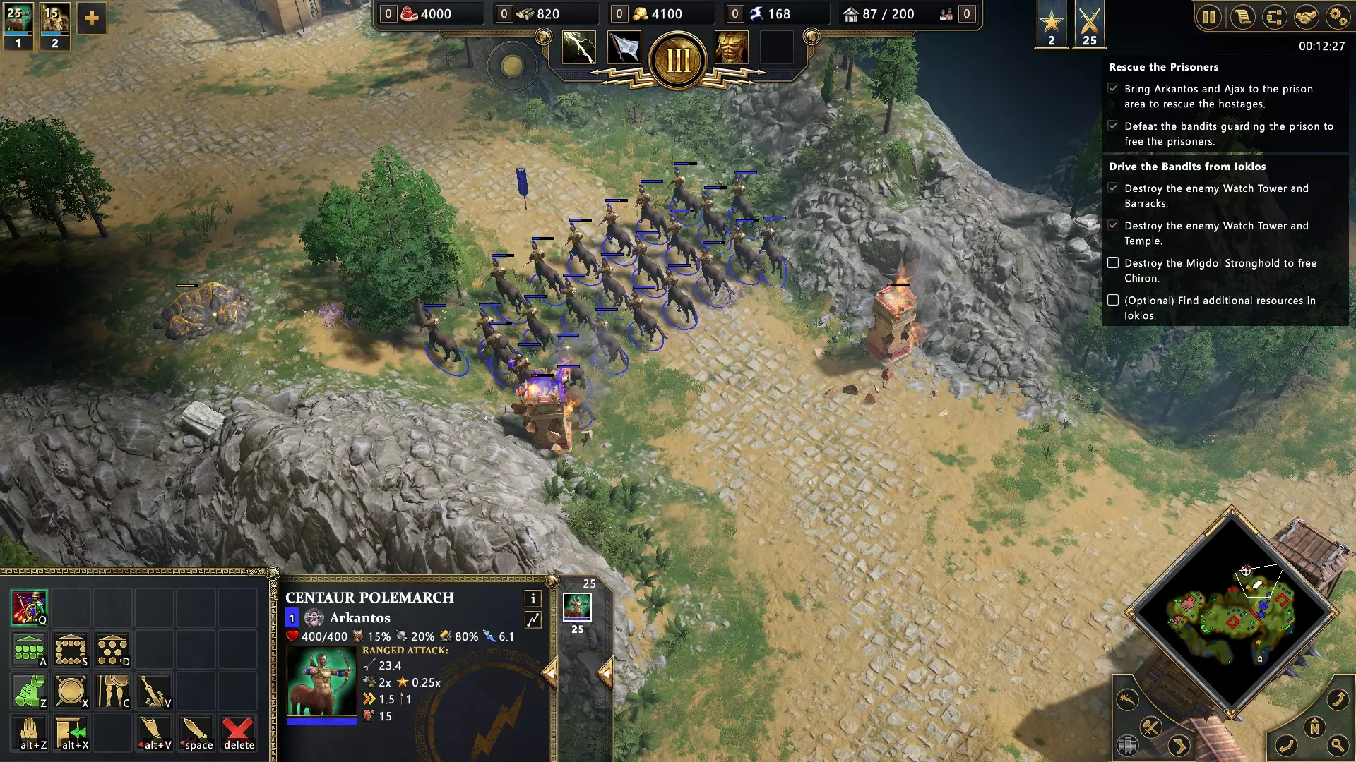 要完成此成就,在第7任务中我们必须只使用半人马(它们在神庙中训练)。除英雄外的其他单位都必须被消灭(要消灭单位,需按键盘上的DEL键,或者在界面底部会有一个带叉号的按钮)。