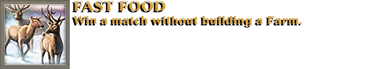 农场是自古典时代起无限食物的主要来源。要达成此成就,需要在不建造任何农场的情况下赢得比赛,这可能颇具难度,因为其他食物来源不可再生,无法提供稳定的供给。因此,在我看来,最简单的获胜方式是在“死斗”模式下进行。在此模式下,玩家会立即获得大量资源(每人15000单位),因此可以直接开始组建军队并攻击敌人。